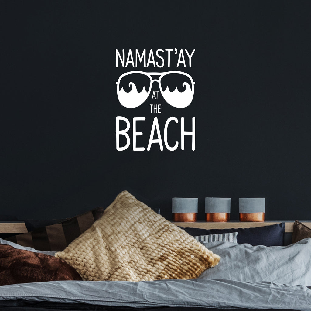 This awesome decal quote "Namast'ay At The Beach"; is the perfect touch for your home. Use it for your kids room; living room or anywhere you want to bring some extra decoration. It's a vinyl sticker that is easy to put on any smooth and dry surface. Our modern designs don't just brighten up the room; but brighten up the day. Using top of the line vinyl across all of our production allows us to be the leaders in quality and design.
