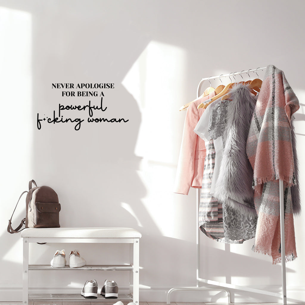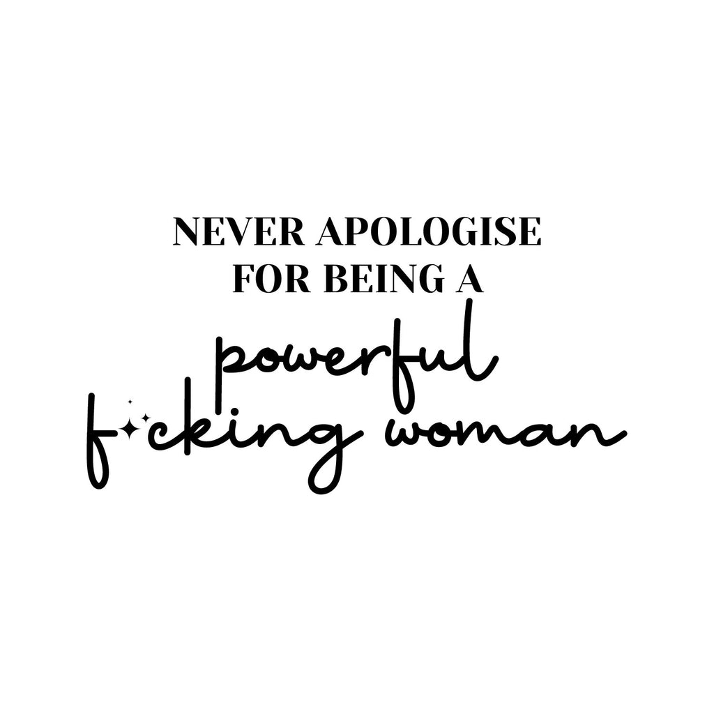 This awesome positive & sarcastic decal quote "Never Apologise For Being A Powerful F*cking Woman"; is the perfect touch for your home or office. Use it for your closet; bedroom or anywhere you want to bring some extra fun decoration. It's a vinyl sticker that is easy to put on any smooth and dry surface. Our modern designs don't just brighten up the room; but brighten up the day. Using top of the line vinyl across all of our production allows us to be the leaders in quality and design.