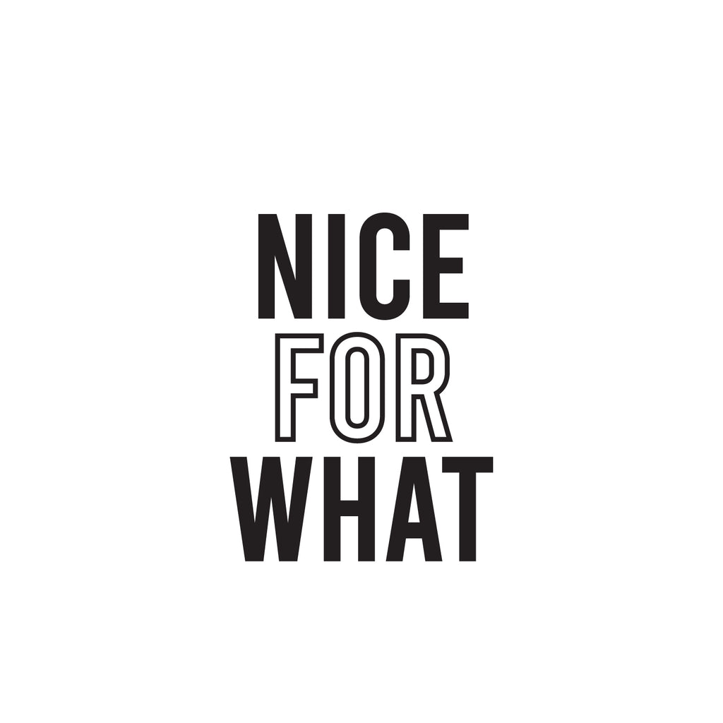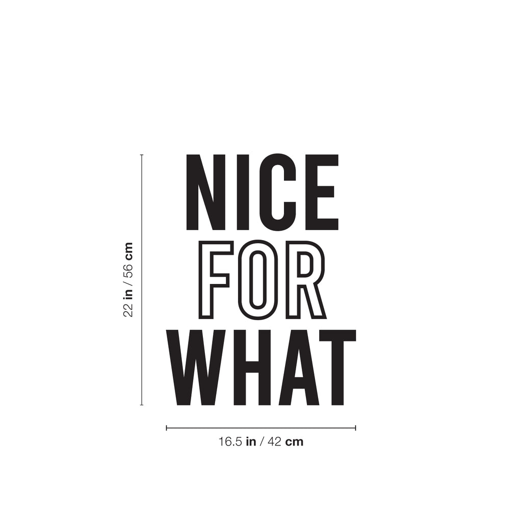 This awesome optimistic decal quote "Nice For What"; is the perfect touch for your home or work. Use it for your bedroom; playroom; living room or anywhere you want to bring some extra positive decoration. It's a vinyl sticker that is easy to put on any smooth and dry surface. Our modern designs don't just brighten up the room; but brighten up the day. Using top of the line vinyl across all of our production allows us to be the leaders in quality and design.