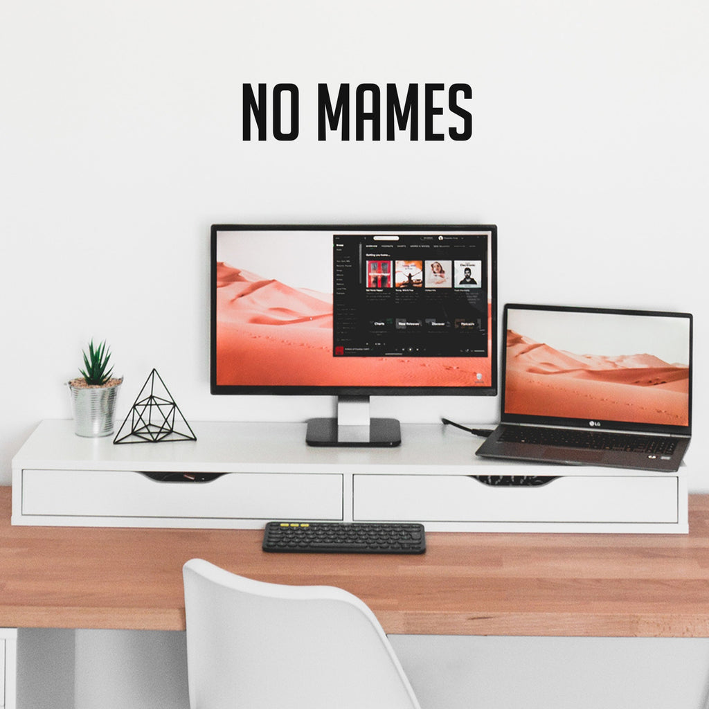 This awesome funny & sarcastic decal quote "No Mames"; is the perfect touch for your home or office. Use it for your business; coffee shop; bathroom or anywhere you want to bring some extra positive decoration. It's a vinyl sticker that is easy to put on any smooth and dry surface. Our modern designs don't just brighten up the room; but brighten up the day. Using top of the line vinyl across all of our production allows us to be the leaders in quality and design.