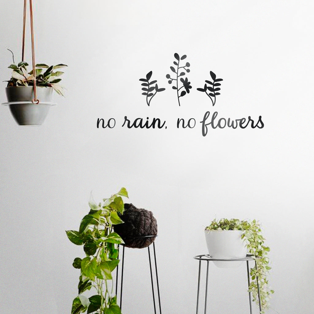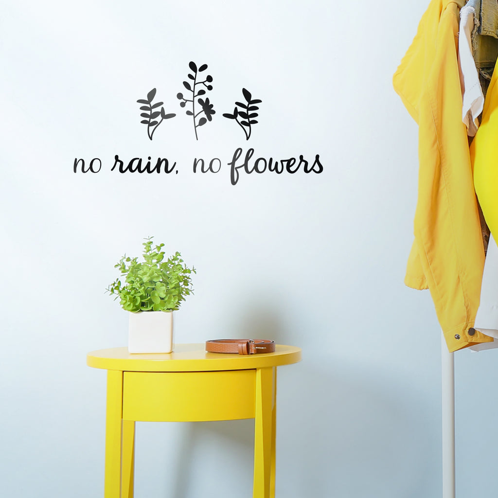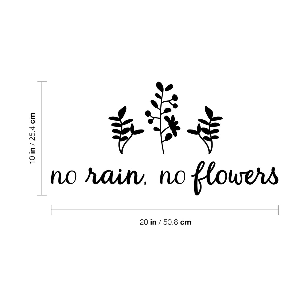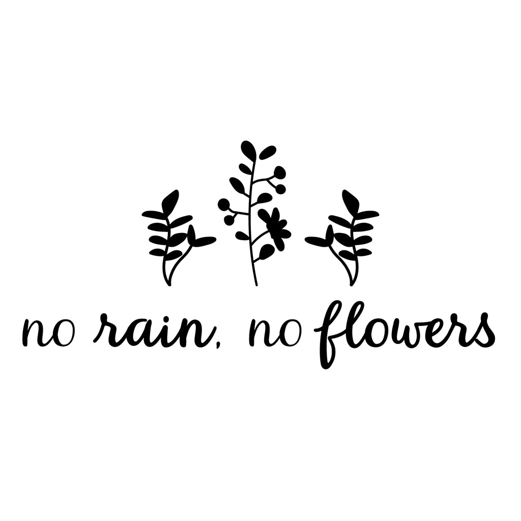 Vinyl Wall Art Decal - No Rain No Flowers - Trendy Positive Indoor Outdoor Home Apartment Living Room Bedroom Office Dorm Room Work Quotes Decor