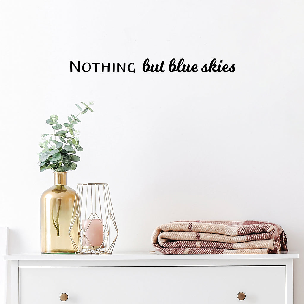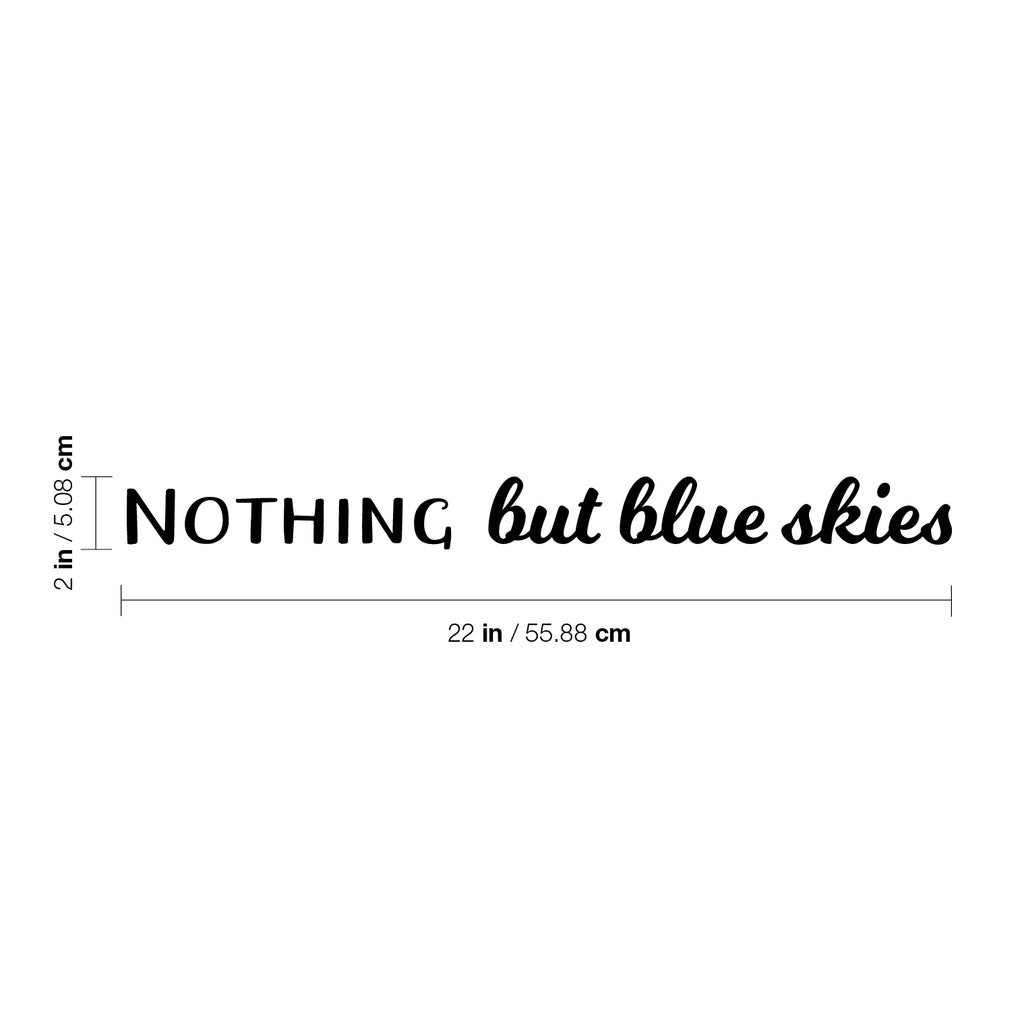 This awesome positive & inspirational decal quote "Nothing But Blue Skies"; is the perfect touch for your home or office. Use it for your make up mirror; bathroom; closet or anywhere you want to bring some extra cute decoration. It's a vinyl sticker that is easy to put on any smooth and dry surface. Our modern designs don't just brighten up the room; but brighten up the day. Using top of the line vinyl across all of our production allows us to be the leaders in quality and design.