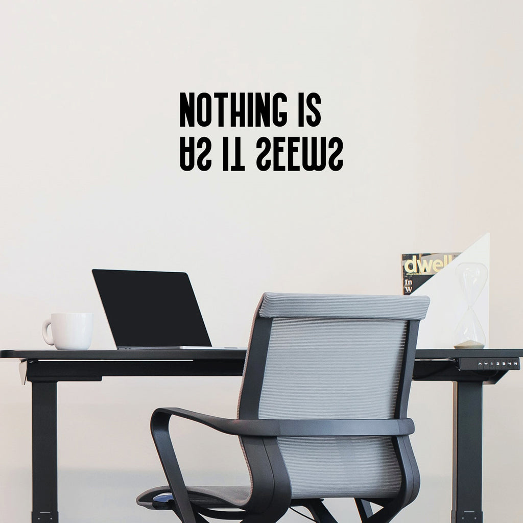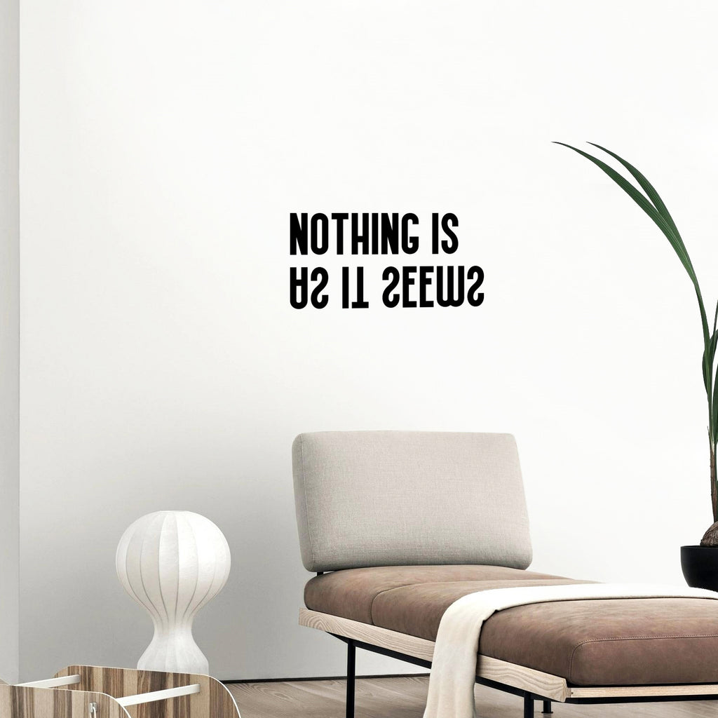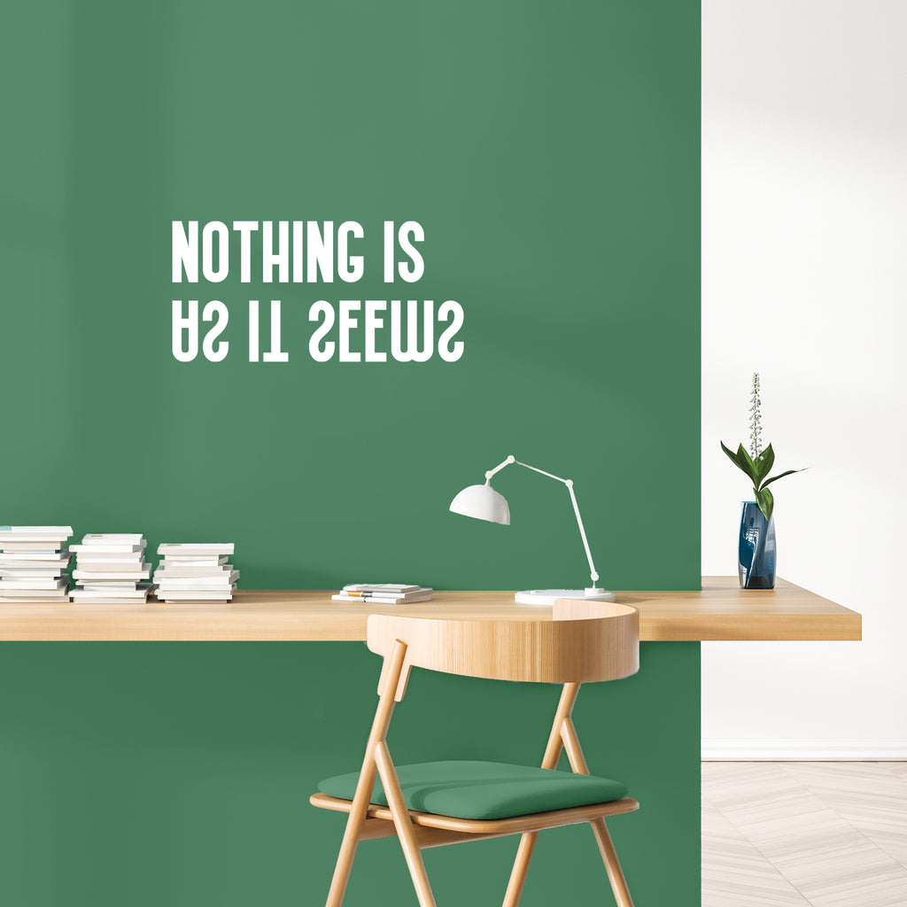 This awesome positive decal quote "Nothing Is As It Seems"; is the perfect touch for your home or school. Use it for your classroom; playroom; kids room or anywhere you want to bring some extra inspiring decoration. It's a vinyl sticker that is easy to put on any smooth and dry surface. Our modern designs don't just brighten up the room; but brighten up the day. Using top of the line vinyl across all of our production allows us to be the leaders in quality and design.