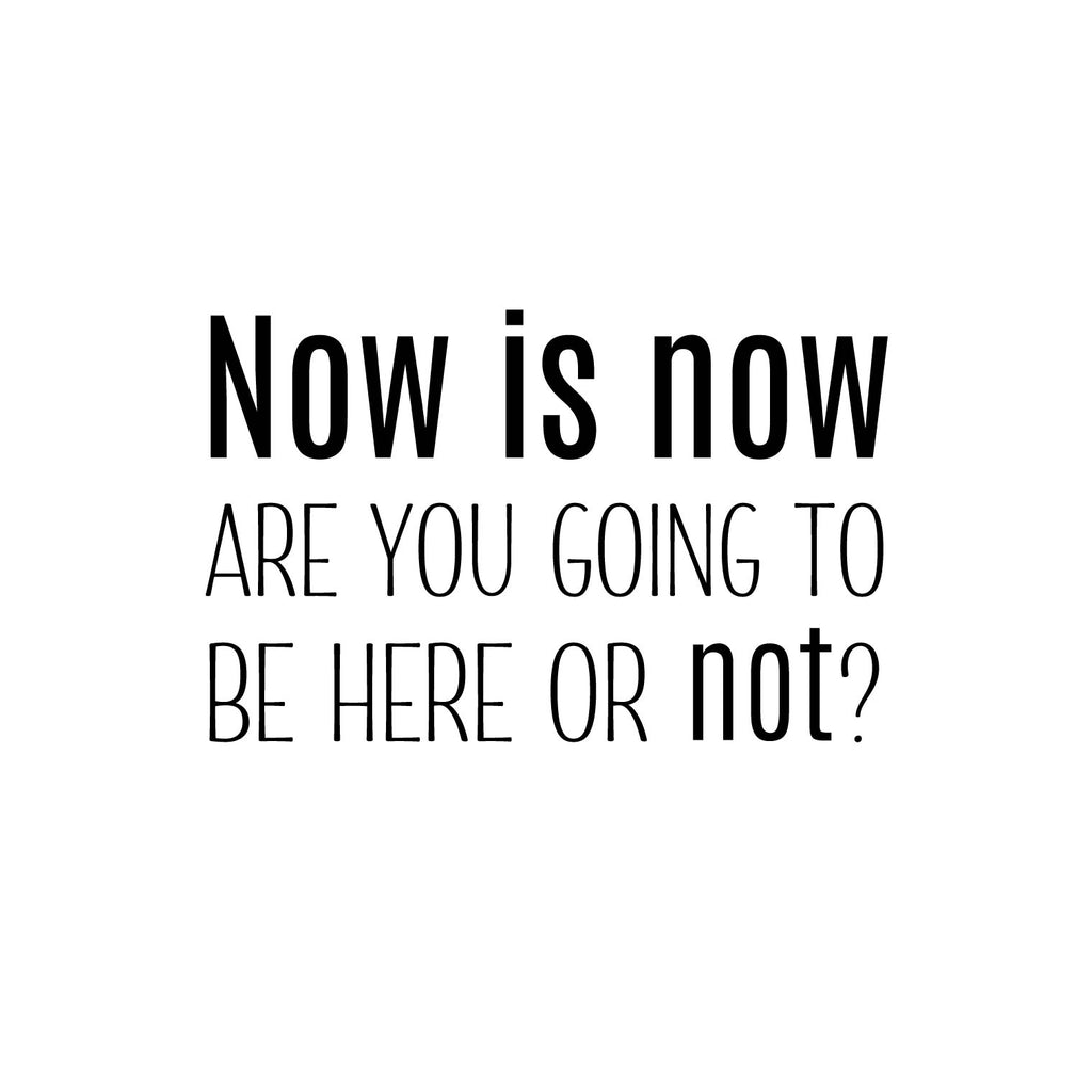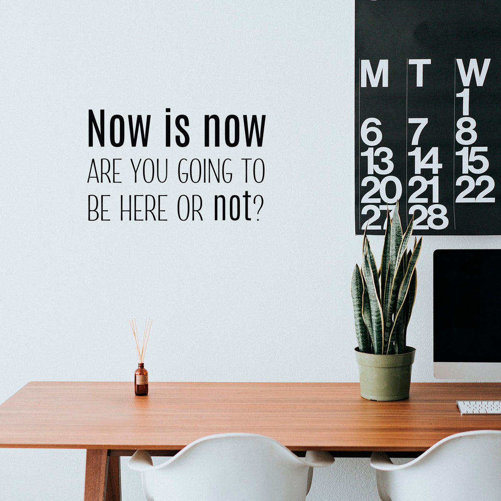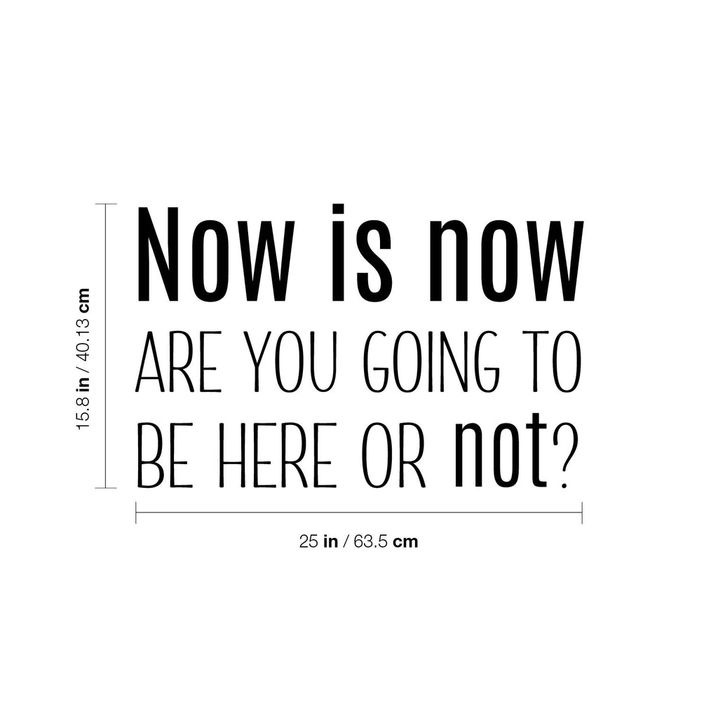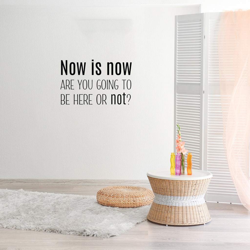 This awesome motivational decal quote "Now Is Now Are You Going To Be Here Or Not?"; is the perfect touch for your home or school. Use it for your living room; playroom; kids room or anywhere you want to bring some extra cute decoration. It's a vinyl sticker that is easy to put on any smooth and dry surface. Our modern designs don't just brighten up the room; but brighten up the day. Using top of the line vinyl across all of our production allows us to be the leaders in quality and design.