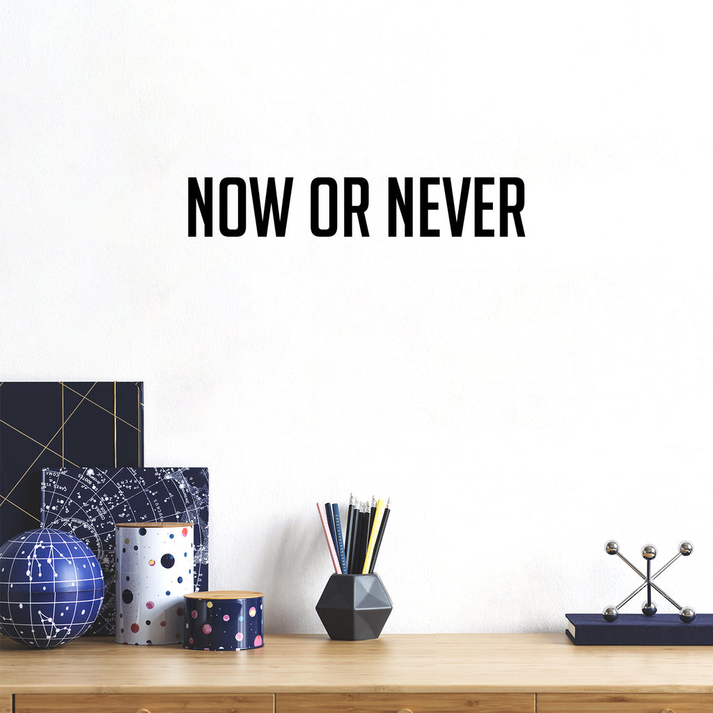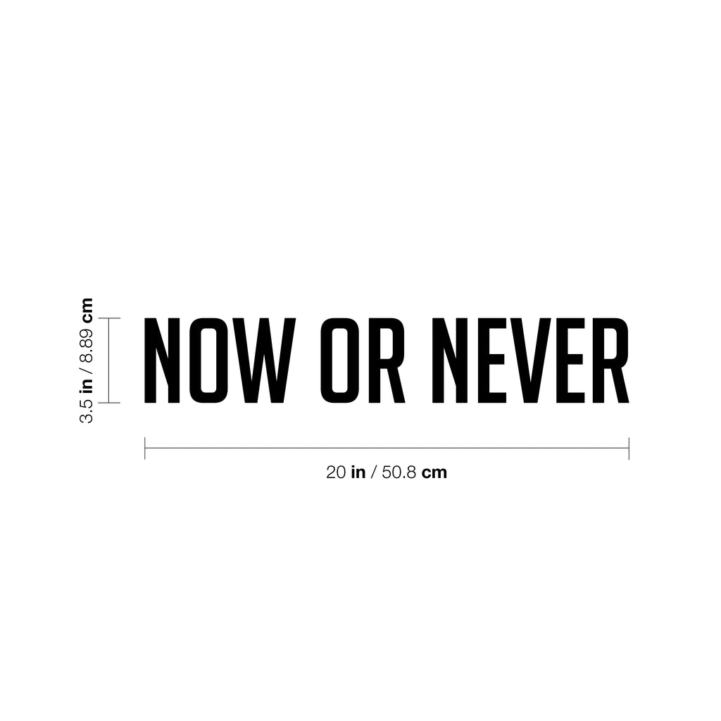 This awesome decal quote "Now Or Never"; is the perfect touch for your home or work. Use it for your dorm room; home office or anywhere you want to bring some extra decoration. It's a vinyl sticker that is easy to put on any smooth and dry surface. Our modern designs don't just brighten up the room; but brighten up the day. Using top of the line vinyl across all of our production allows us to be the leaders in quality and design.