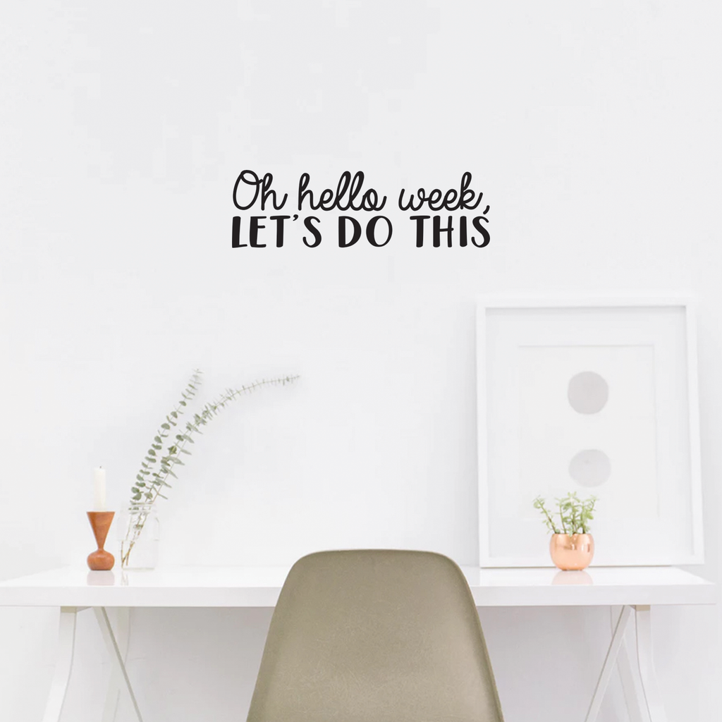 This trendy "Oh Hello Week Let's Do This" decal is the perfect touch for your home or office. Use it for your bedroom; living room; or anywhere you want to bring some extra decoration. It's a vinyl sticker that is easy to put on any smooth and dry surface. Our modern designs don't just brighten up the room; but brighten up the day. Using top of the line vinyl across all of our production allows us to be the leaders in quality and design.
