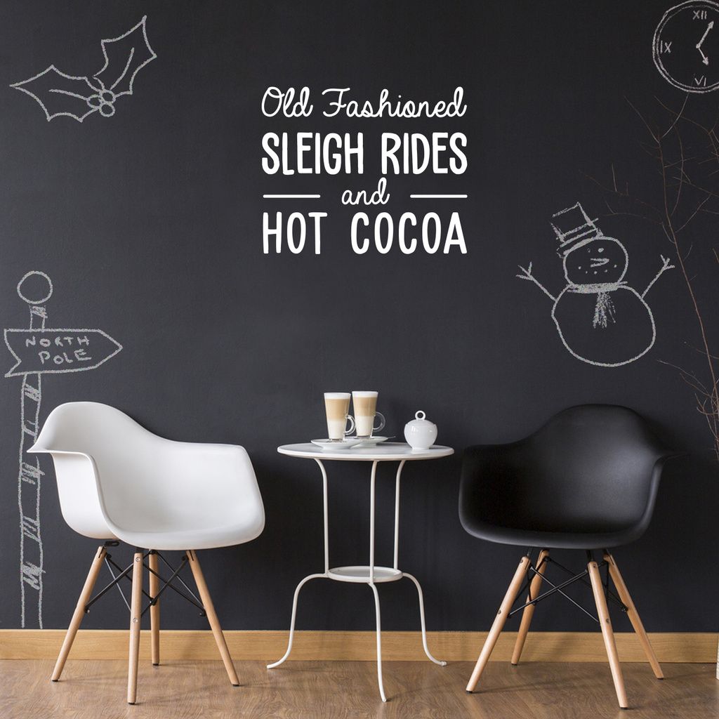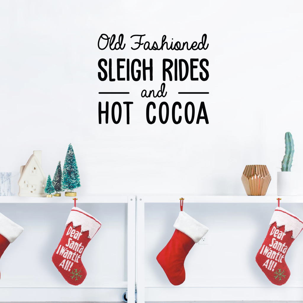 This awesome christmas decal quote "Old Fashioned Sleigh Rides And Hot Cocoa" is the perfect touch for your home or store. Use it for your living room; front door; near your christmas tree or anywhere you want to bring some extra decoration. It's a vinyl sticker that is easy to put on any smooth and dry surface. Our modern designs don't just brighten up the room; but brighten up the day. Using top of the line vinyl across all of our production allows us to be the leaders in quality and design.