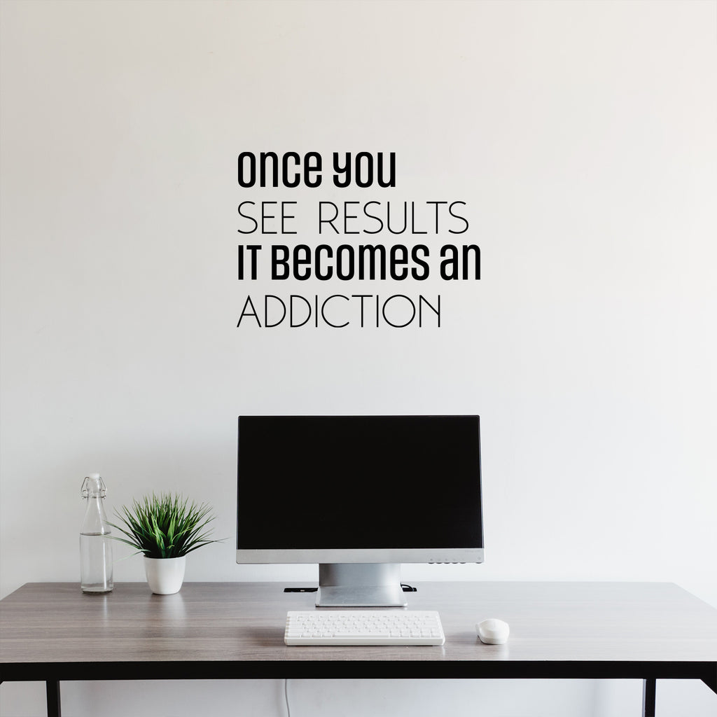 This awesome positive decal quote "Once You See Results It Becomes An Addiction"; is the perfect touch for your fitness center or home. Use it for your mirrors; workout room; fitness center or anywhere you want to bring some extra positive decoration. It's a vinyl sticker that is easy to put on any smooth and dry surface. Our modern designs don't just brighten up the room; but brighten up the day. Using top of the line vinyl across all of our production allows us to be the leaders in quality and design.