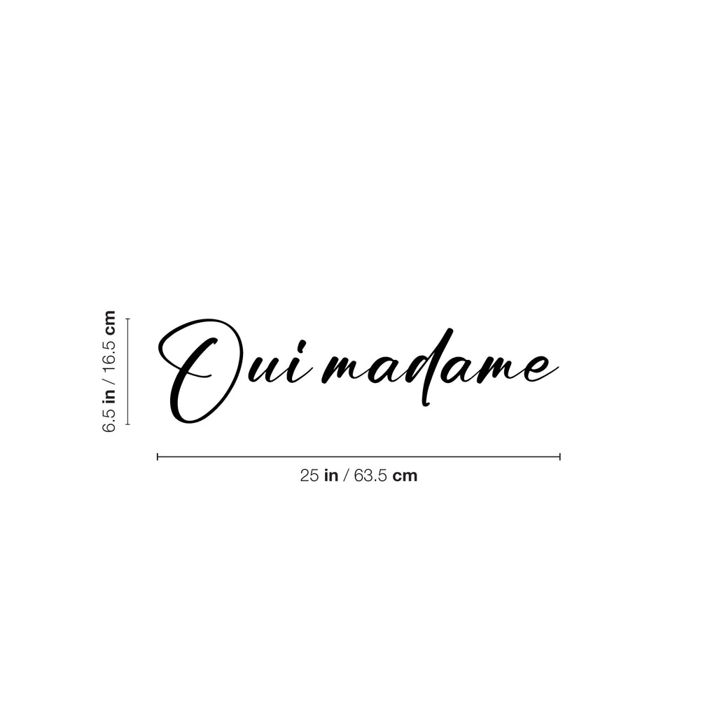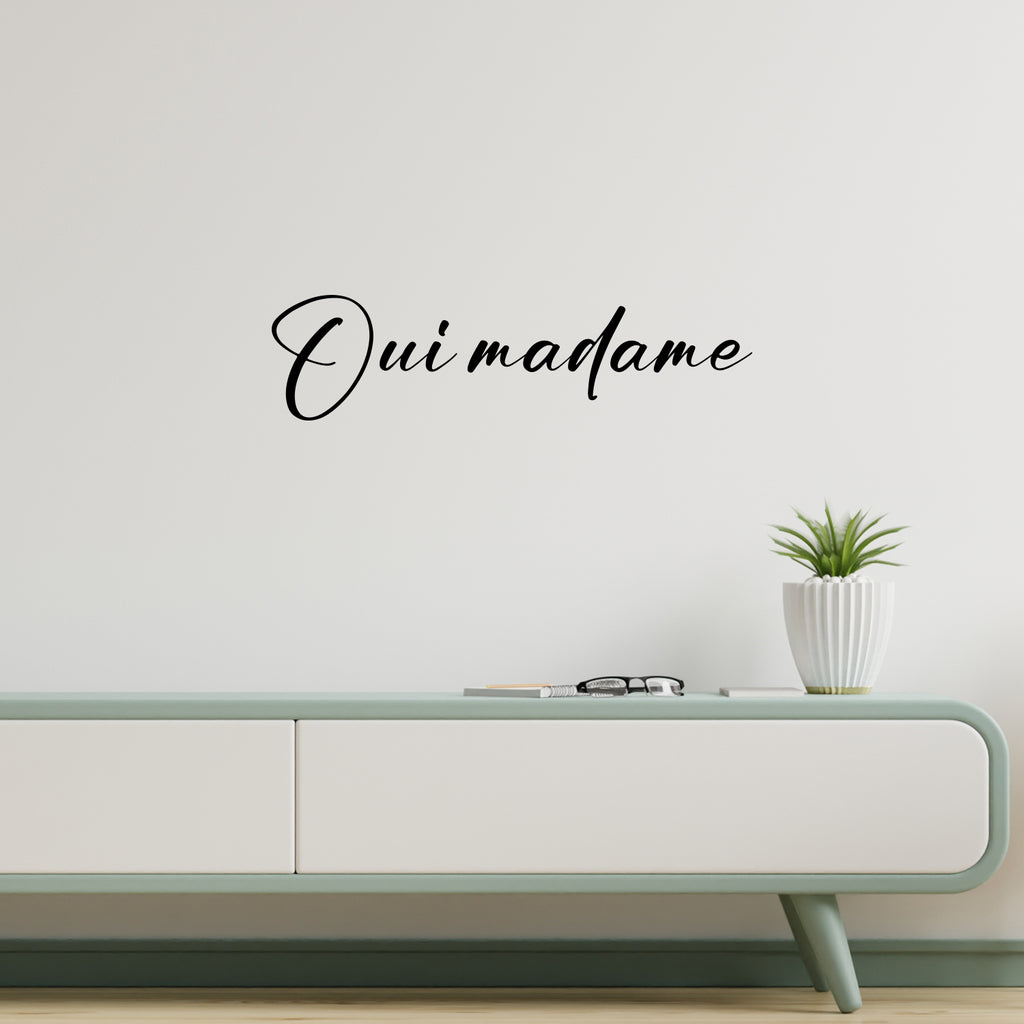 This awesome cute & sweet inspirational decal quote "Oui Madame"; is the perfect touch for your home. Use it for your bedroom; living room; class or anywhere you want to bring some extra decoration. It's a vinyl sticker that is easy to put on any smooth and dry surface. Our modern designs don't just brighten up the room; but brighten up the day. Using top of the line vinyl across all of our production allows us to be the leaders in quality and design.