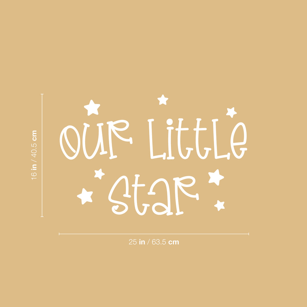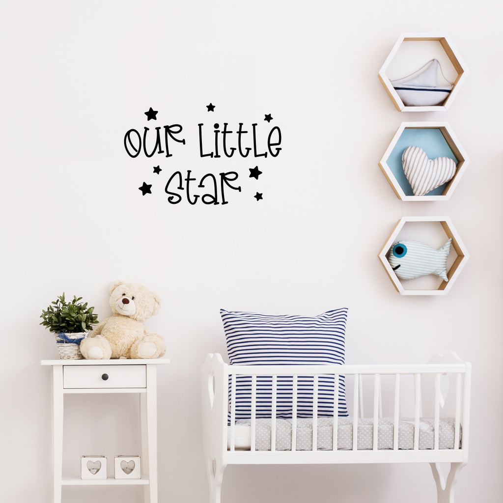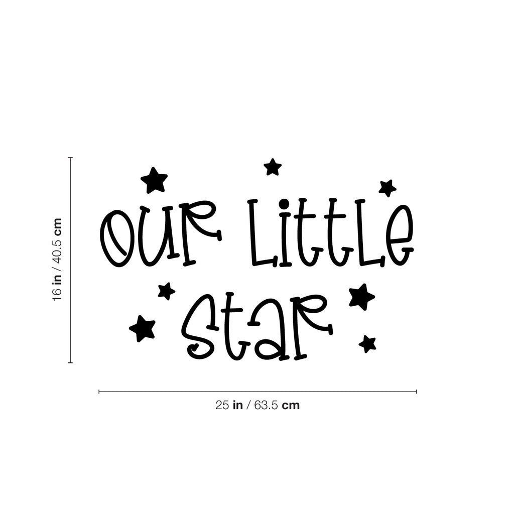 This awesome inspirational decal quote "Our Little Star"; is the perfect touch for your home. Use it for your kids bedroom; playroom; daycare or anywhere you want to bring some extra fun decoration. It's a vinyl sticker that is easy to put on any smooth and dry surface. Our modern designs don't just brighten up the room; but brighten up the day. Using top of the line vinyl across all of our production allows us to be the leaders in quality and design.