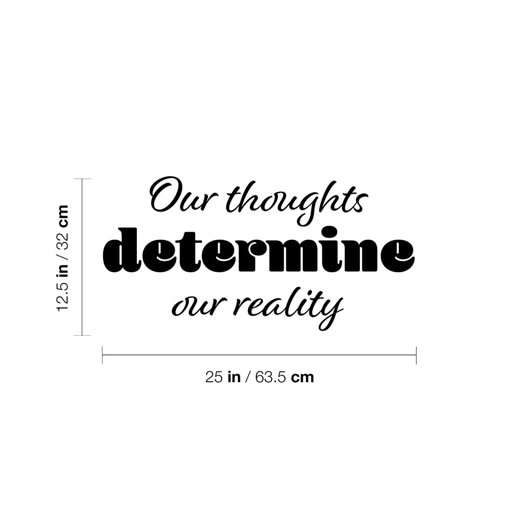 This trendy positive & motivational decal quote "Our Thoughts Determine Our Reality"; is the perfect touch for your office or home. Use it for your living room; coffee shop; classroom or anywhere you want to bring some extra positive decoration. It's a vinyl sticker that is easy to put on any smooth and dry surface. Our modern designs don't just brighten up the room; but brighten up the day. Using top of the line vinyl across all of our production allows us to be the leaders in quality and design.
