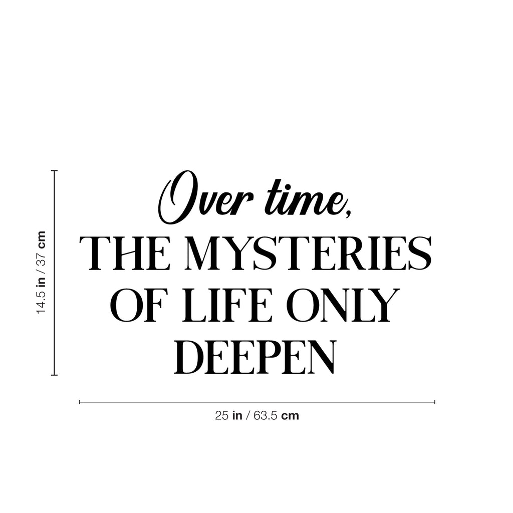This awesome inspirational decal quote "Over Time The Mysteries Of Life Only Deepen" is the perfect touch for your home or office. Use it for your living room; playroom; classroom or anywhere you want to bring some extra cute decoration. It's a vinyl sticker that is easy to put on any smooth and dry surface. Our modern designs don't just brighten up the room; but brighten up the day. Using top of the line vinyl across all of our production allows us to be the leaders in quality and design.
