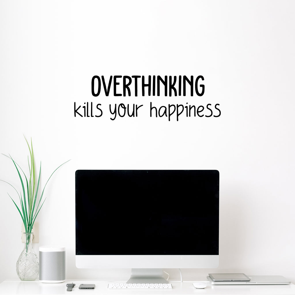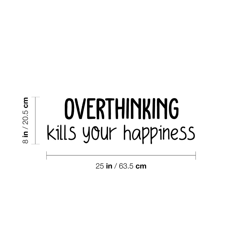 This decal quote "Overthinking Kills Your Happiness"; is the perfect touch for your home. Use it for your dorm room; home office or anywhere you want to bring some extra decoration. It's a vinyl sticker that is easy to put on any smooth and dry surface. Our modern designs don't just brighten up the room; but brighten up the day. Using top of the line vinyl across all of our production allows us to be the leaders in quality and design.
