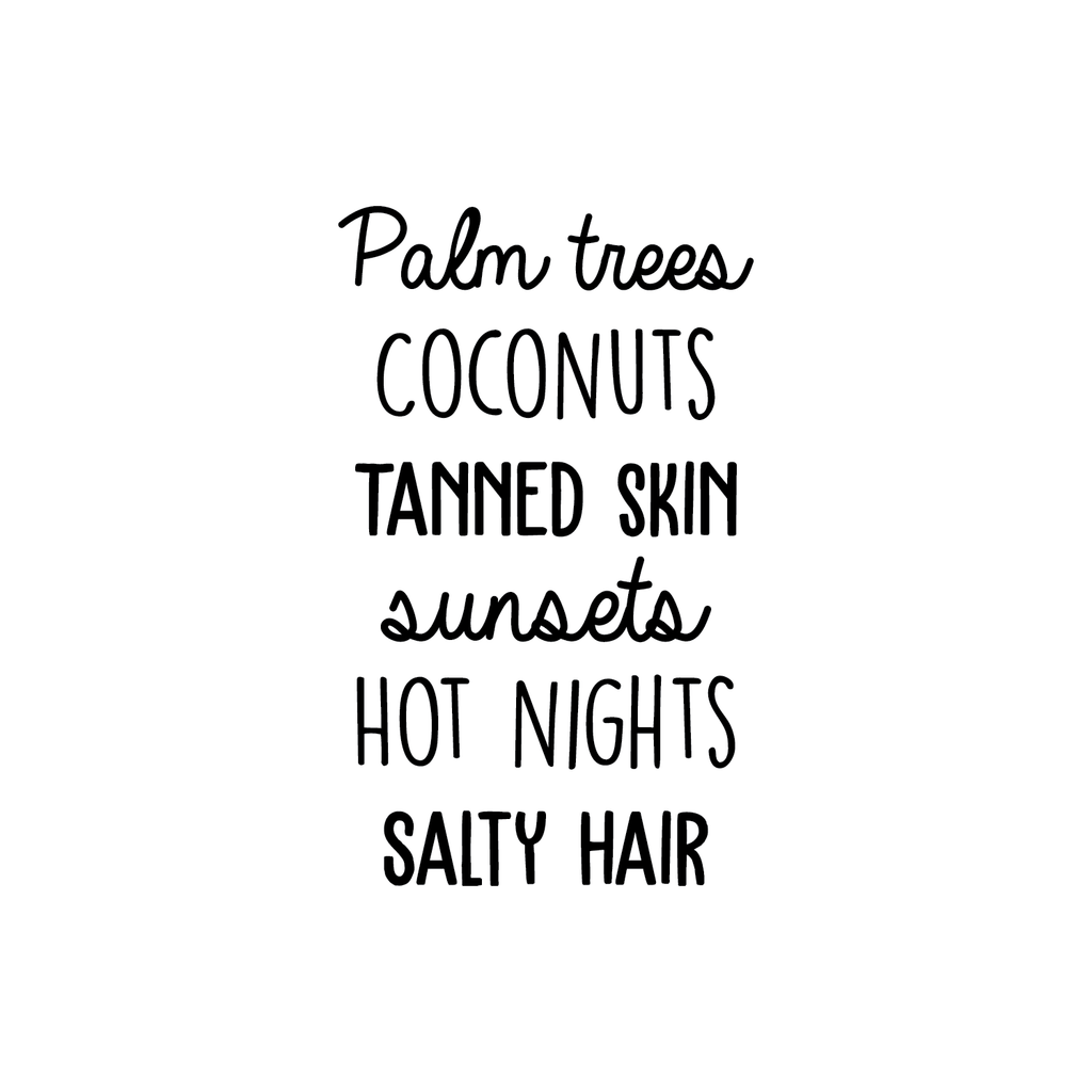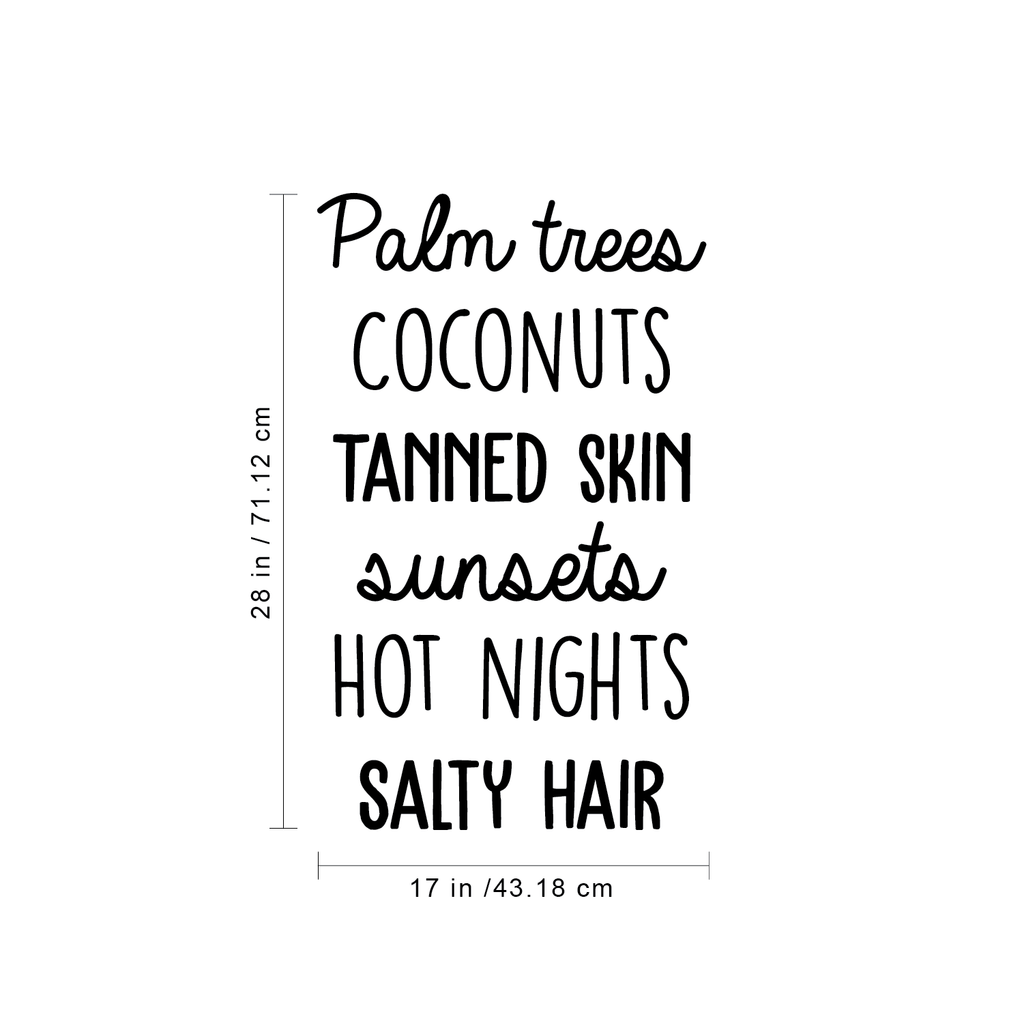 Vinyl Wall Art Decal - Palm Trees Coconuts Tanned Skin Sunsets Hot Nights Salty Hair - Trendy Quote For Home Bedroom Closet Living Room Dorm Room Retail Store Decoration Sticker