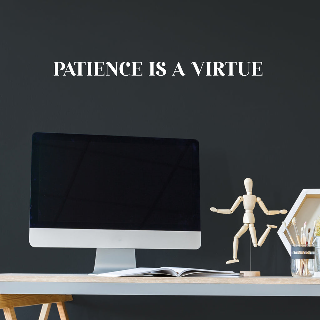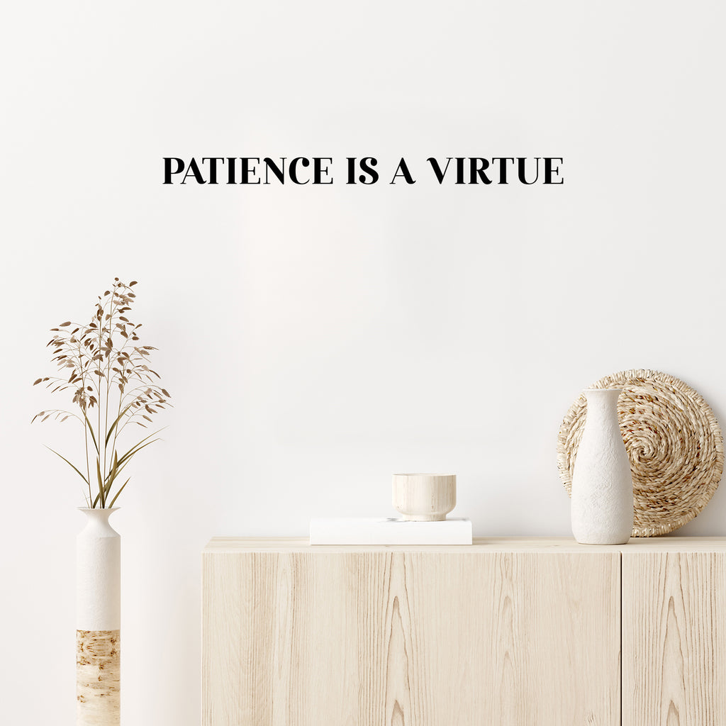 This awesome optimistic & motivational decal quote "Patience Is A Virtue"; is the perfect touch for your gym or office. Use it for your living room; school; workout space or anywhere you want to bring some extra positive decoration. It's a vinyl sticker that is easy to put on any smooth and dry surface. Our modern designs don't just brighten up the room; but brighten up the day. Using top of the line vinyl across all of our production allows us to be the leaders in quality and design.