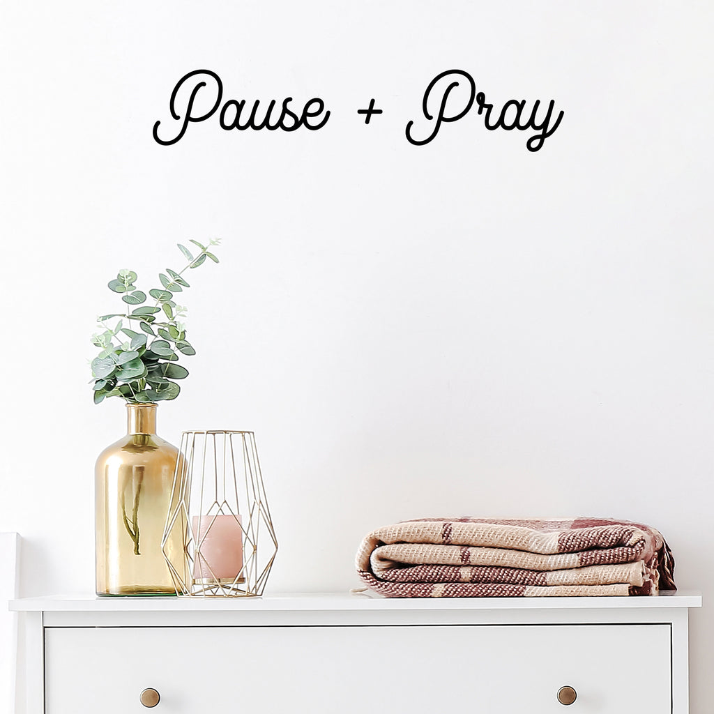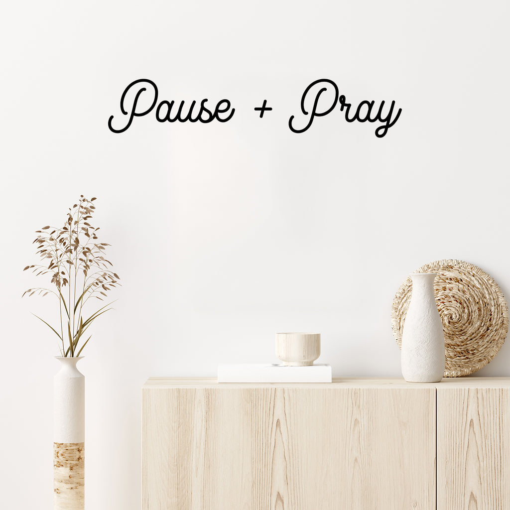 This awesome cute & spiritual decal quote "Pause + Pray"; is the perfect touch for your home. Use it for your kids room; living room or anywhere you want to bring some extra decoration. It's a vinyl sticker that is easy to put on any smooth and dry surface. Our modern designs don't just brighten up the room; but brighten up the day. Using top of the line vinyl across all of our production allows us to be the leaders in quality and design.