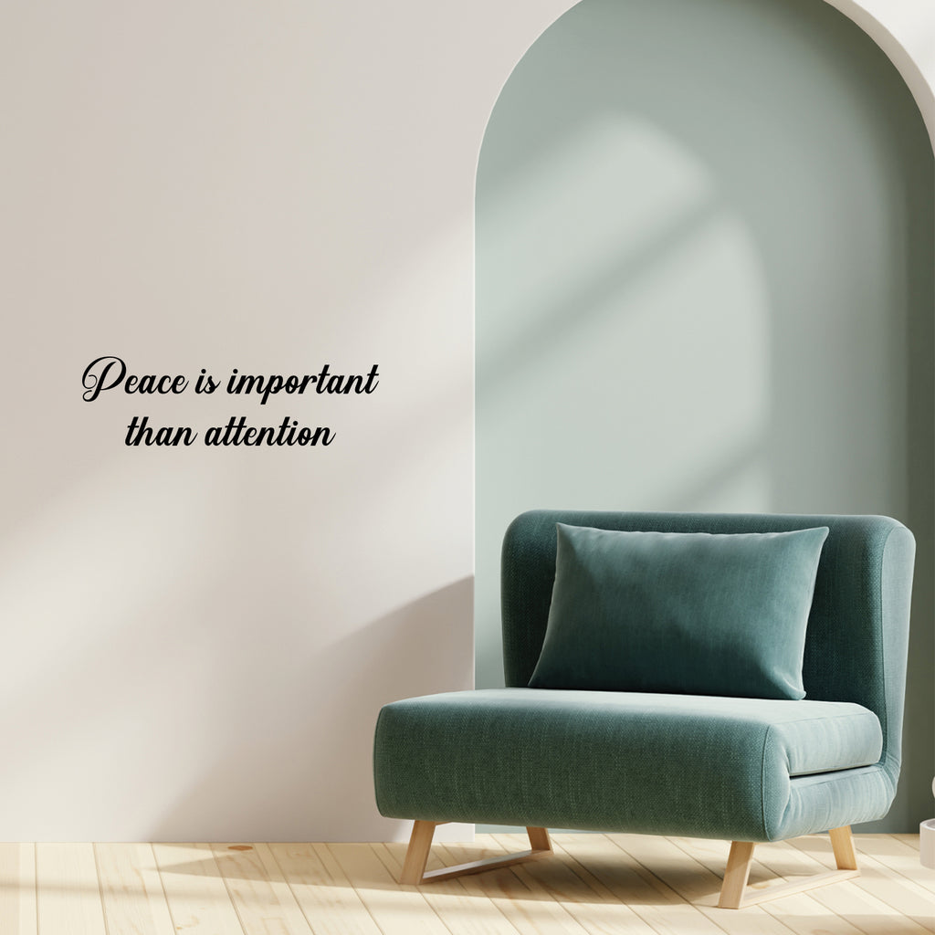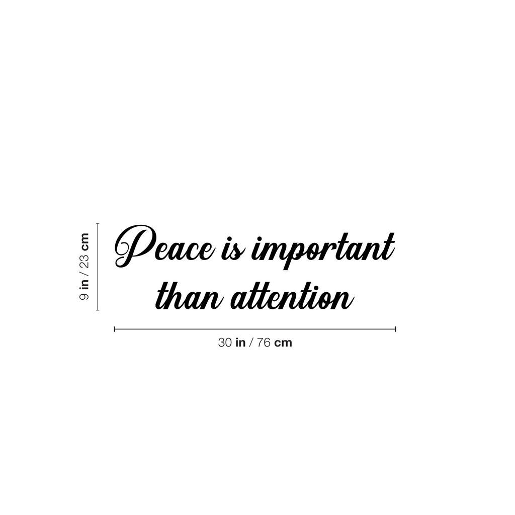 This awesome motivational & optimistic decal quote "Peace Is Important Than Attention"; is the perfect touch for your home or office. Use it for your living room; playroom; kids room or anywhere you want to bring some extra cute decoration. It's a vinyl sticker that is easy to put on any smooth and dry surface. Our modern designs don't just brighten up the room; but brighten up the day. Using top of the line vinyl across all of our production allows us to be the leaders in quality and design.