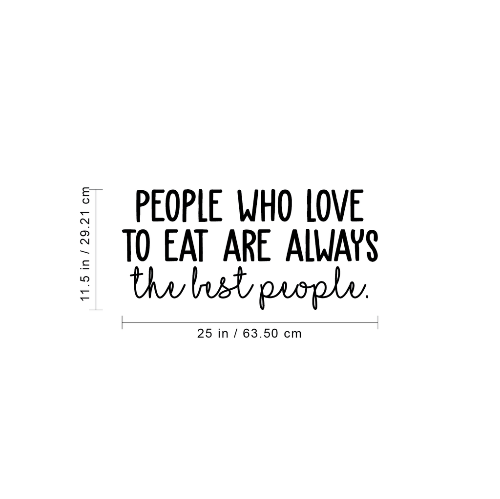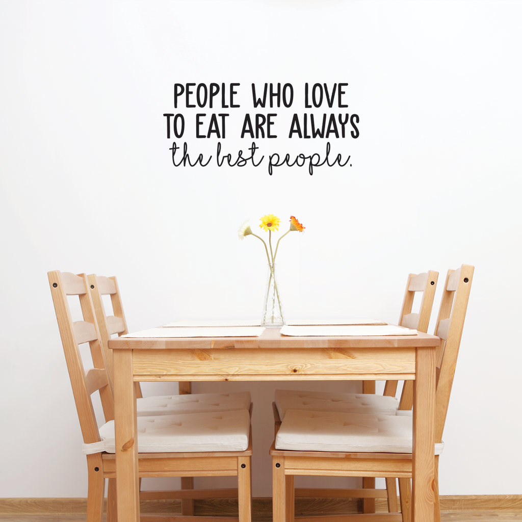 This funny "People Who Love To Eat Are Always The Best People" wall decal quote is modern and the perfect touch for your home or restaurant. Use it for your kitchen; bar; or any other room in your house where you want to bring some extra decoration. It's a vinyl sticker that is easy to put on almost any smooth and dry surface. Our designs don't just brighten up the room; but brighten up your day. Using top of the line vinyl across all of our production allows us to be the leaders in quality and design.