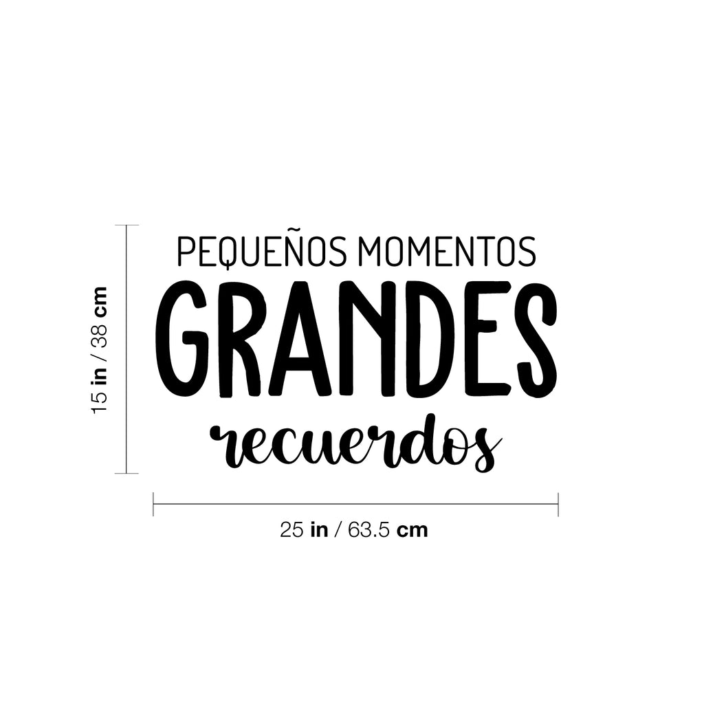 This inspirational & cute decal quote "Pequeños Momentos; Grandes Recuerdos / Little Moments; Big Memories"; is the perfect touch for your home. Use it for your school; living room; kids room or anywhere you want to bring some extra optimistic decoration. It's a vinyl sticker that is easy to put on any smooth and dry surface. Our modern designs don't just brighten up the room; but brighten up the day. Using top of the line vinyl across all of our production allows us to be the leaders in quality and design.