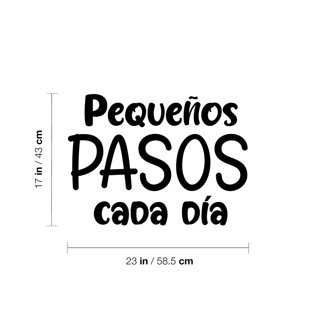 This awesome positive & fun decal quote "Pequeños Pasos Cada Día / Small Steps Every Day" is the perfect touch for your home or school. Use it for your bedroom; playroom; kids room or anywhere you want to bring some extra cute decoration. It's a vinyl sticker that is easy to put on any smooth and dry surface. Our modern designs don't just brighten up the room; but brighten up the day. Using top of the line vinyl across all of our production allows us to be the leaders in quality and design.