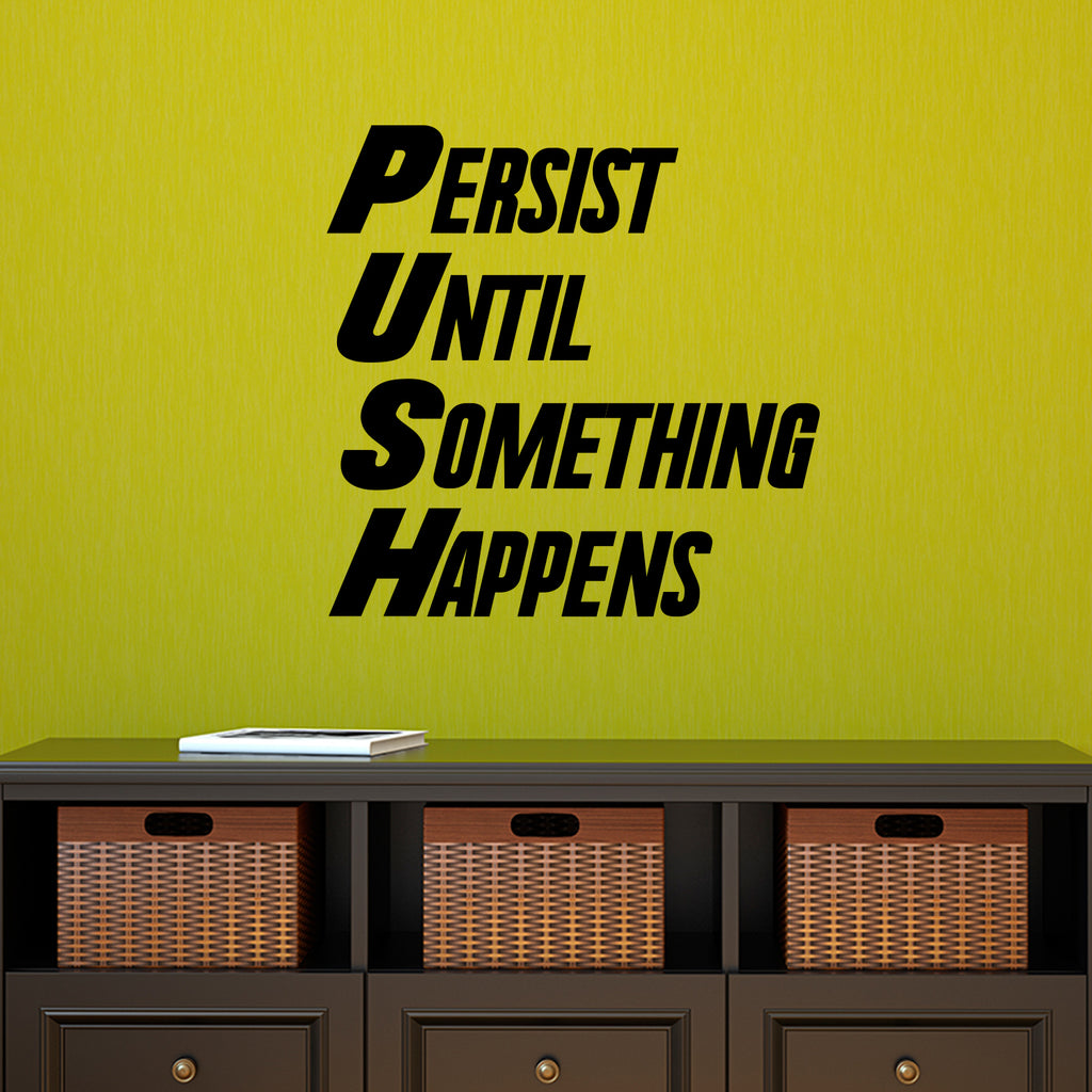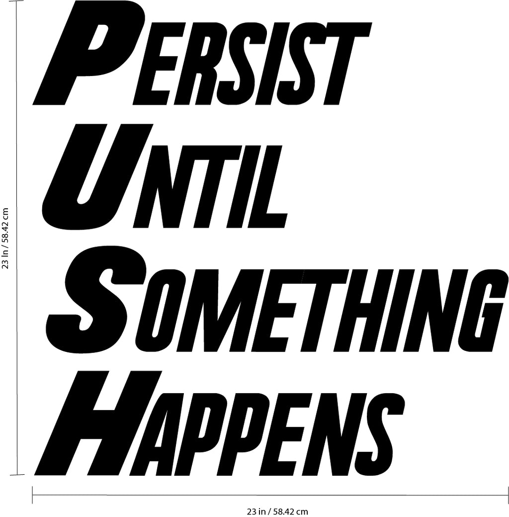 This awesome motivational decal quote "Persist Until Something Happens"; is the perfect touch for your home or work. Use it for your dorm room; living room or anywhere you want to bring some extra girly decoration. It's a vinyl sticker that is easy to put on any smooth and dry surface. Our modern designs don't just brighten up the room; but brighten up the day. Using top of the line vinyl across all of our production allows us to be the leaders in quality and design.