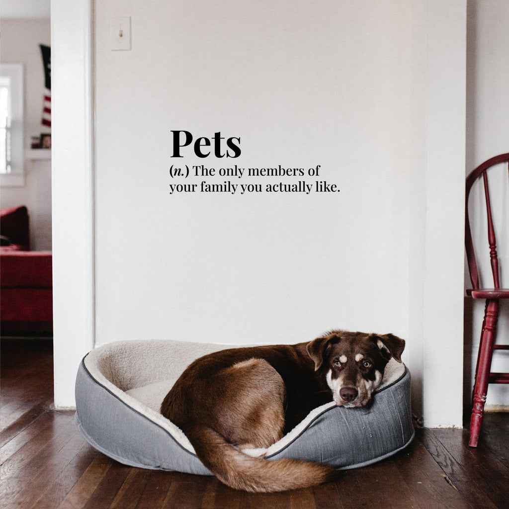 This awesome cute decal quote "Pets Definition"; is the perfect touch for your home or office. Use it for your laptop; notebook; car or anywhere you want to bring some extra cute decoration. It's a vinyl sticker that is easy to put on any smooth and dry surface. Our modern designs don't just brighten up the room; but brighten up the day. Using top of the line vinyl across all of our production allows us to be the leaders in quality and design.