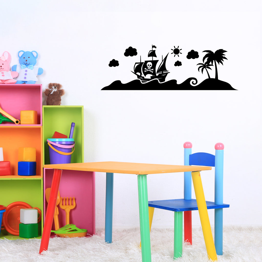 This cute decal quote "Pirate Ship Sea" is the perfect touch for your home. Use it for your nursery; playroom; kids room or anywhere you want to bring some extra cute decoration. It's a vinyl sticker that is easy to put on any smooth and dry surface. Our modern designs don't just brighten up the room; but brighten up the day. Using top of the line vinyl across all of our production allows us to be the leaders in quality and design.