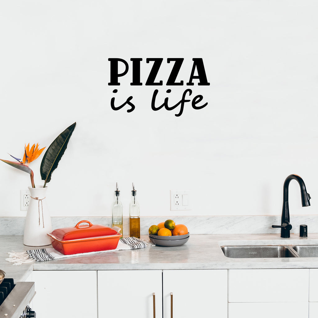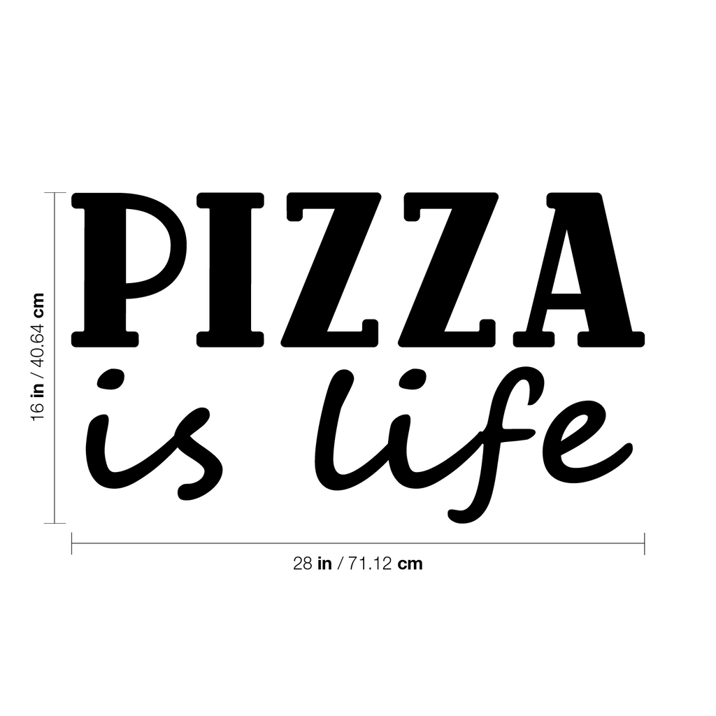 This awesome funny decal quote "Pizza Is Life"; is the perfect touch for your office or coffee shop. Use it for your dining room; restaurant; kitchen or anywhere you want to bring some extra fun decoration. It's a vinyl sticker that is easy to put on any smooth and dry surface. Our modern designs don't just brighten up the room; but brighten up the day. Using top of the line vinyl across all of our production allows us to be the leaders in quality and design.