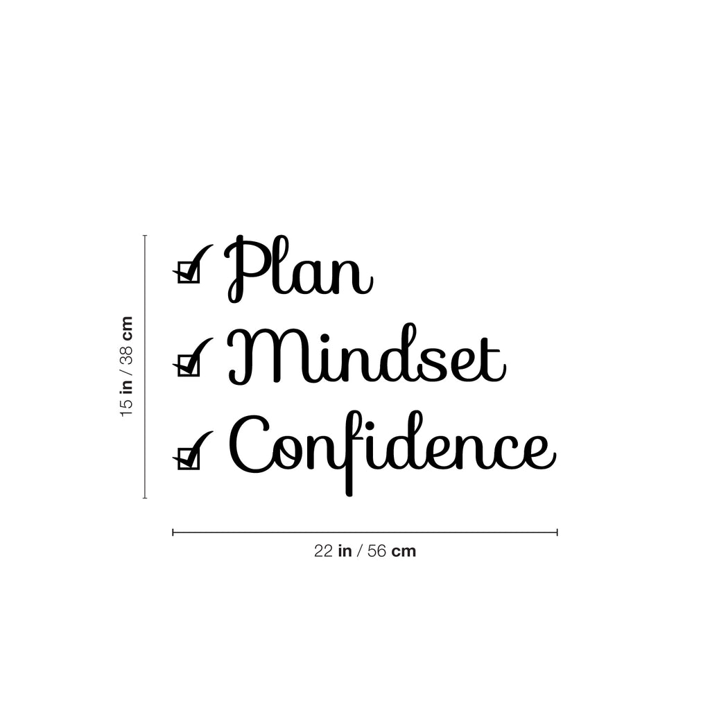 This awesome inspirational decal quote "Plan Mindset Confidence"; is the perfect touch for your home or classroom. Use it for your home school; living room; office or anywhere you want to bring some extra decoration. It's a vinyl sticker that is easy to put on any smooth and dry surface. Our modern designs don't just brighten up the room; but brighten up the day. Using top of the line vinyl across all of our production allows us to be the leaders in quality and design.