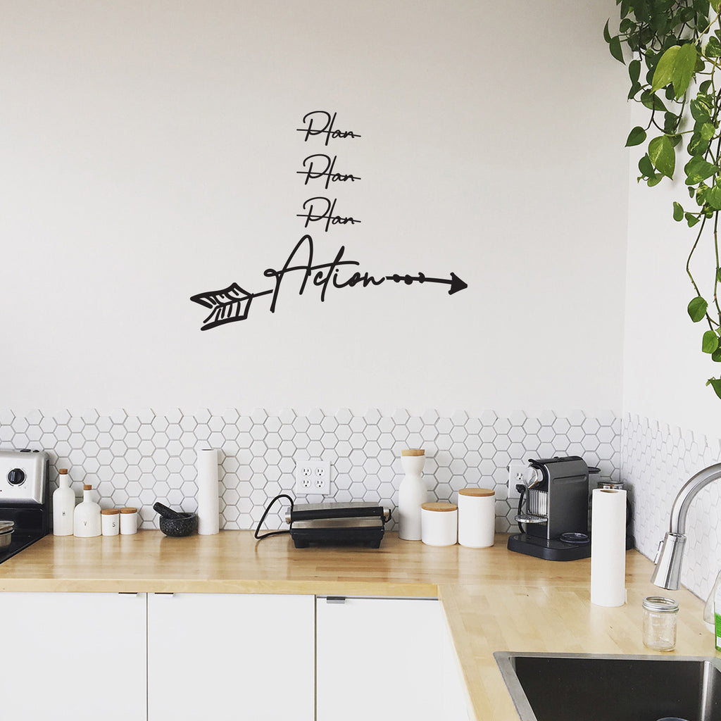 This inspirational decal quote "Plan Plan Plan Action"; is the perfect touch for your home or classroom. Use it for your home school; living room; office or anywhere you want to bring some extra decoration. It's a vinyl sticker that is easy to put on any smooth and dry surface. Our modern designs don't just brighten up the room; but brighten up the day. Using top of the line vinyl across all of our production allows us to be the leaders in quality and design.