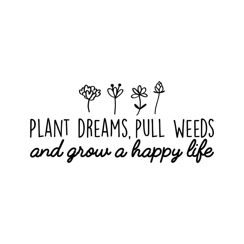 This awesome decal quote "Plant Dreams; Pull Weeds And Grow A Happy Life"; is the perfect touch for your home or apartment. Use it for your dorm room; home office or anywhere you want to bring some extra decoration. It's a vinyl sticker that is easy to put on any smooth and dry surface. Our modern designs don't just brighten up the room; but brighten up the day. Using top of the line vinyl across all of our production allows us to be the leaders in quality and design.