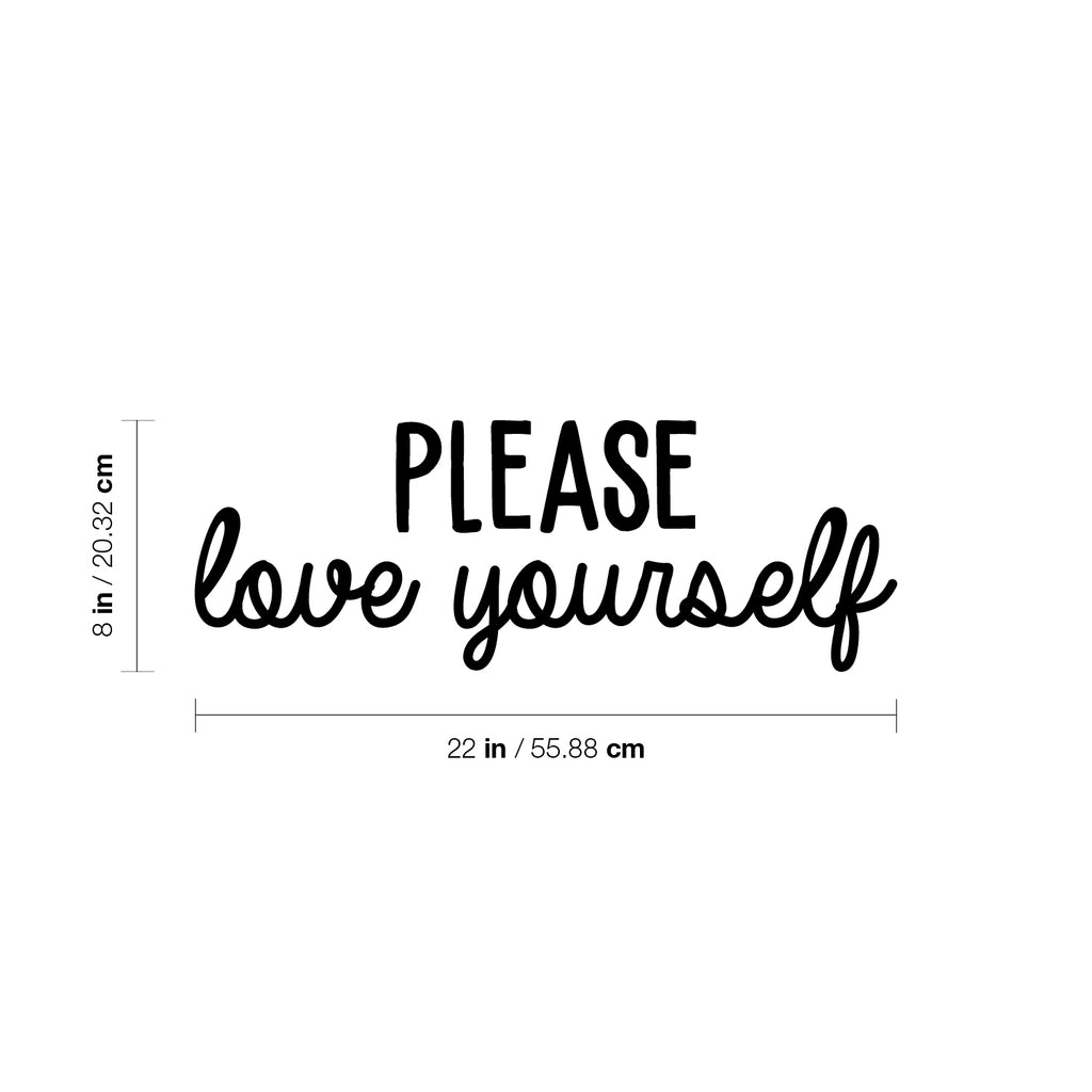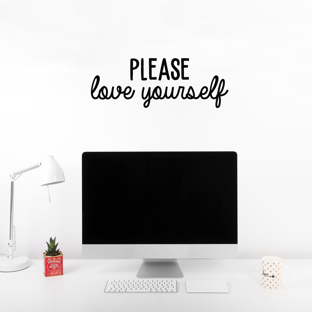 This great decal quote "Please Love Yourself"; is the perfect touch for your home. Use it for your makeup area; dorm room or anywhere you want to bring some extra decoration. It's a vinyl sticker that is easy to put on any smooth and dry surface. Our modern designs don't just brighten up the room; but brighten up the day. Using top of the line vinyl across all of our production allows us to be the leaders in quality and design.