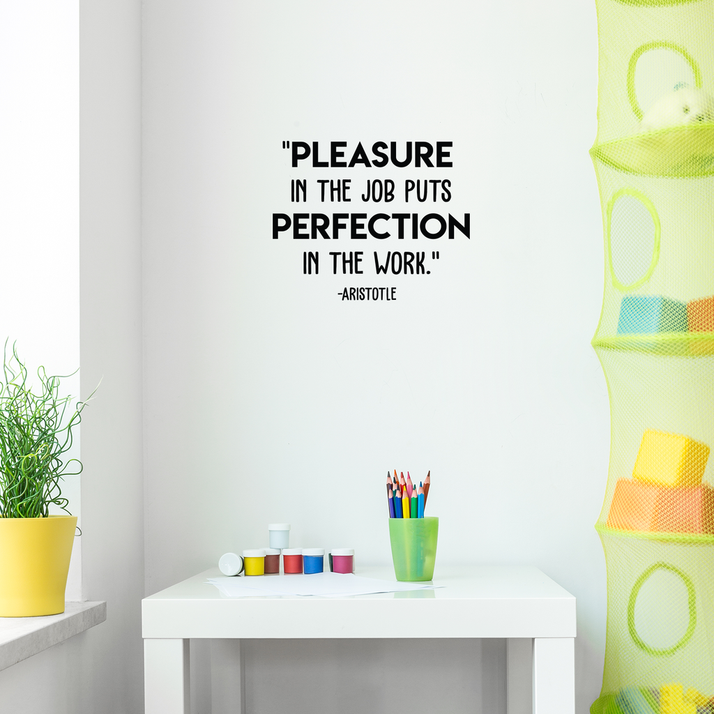 Vinyl Wall Art Decal - Pleasure In The Job - Trendy Motivational Quote for Home Office Space Work Place Decoration Sticker