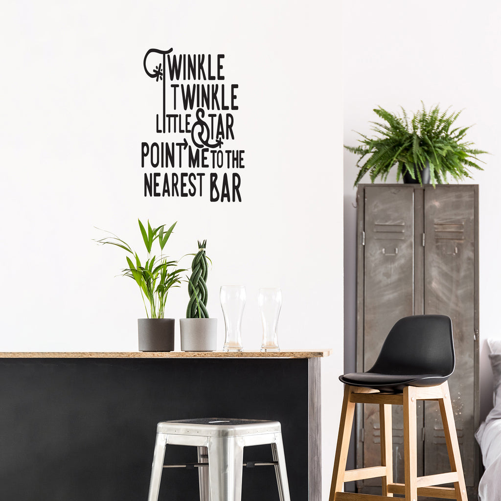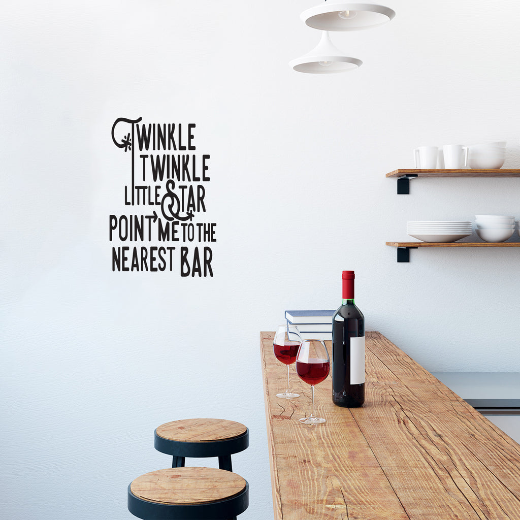 Vinyl Wall Art Decal - Point Me To The Nearest Bar - Trendy Sarcastic Funny Adult Joke Quote Sticker For Kitchen Dining Room Wine Cellar Bar Restaurant Storefront Decor