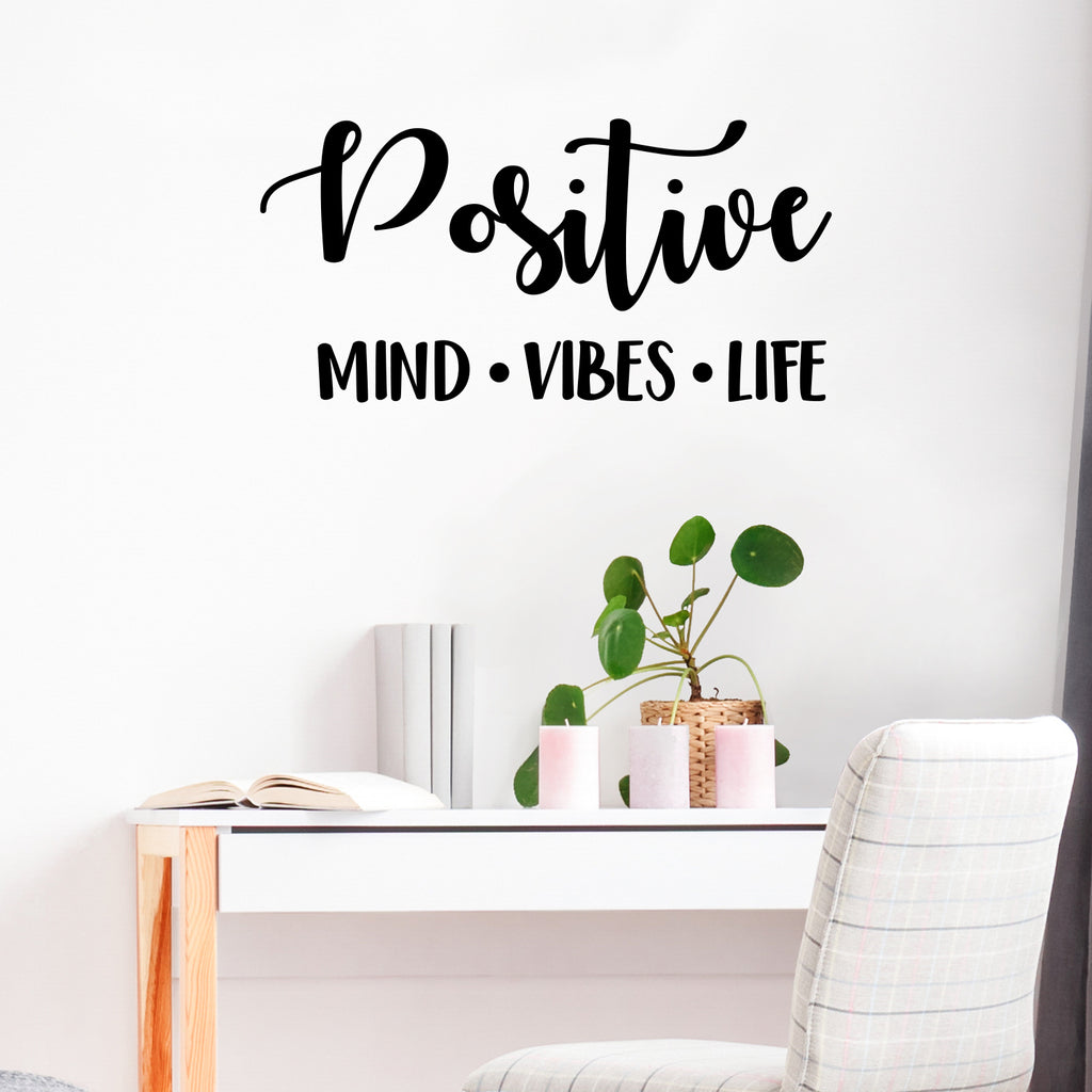 This motivational & positive decal quote "Positive Mind · Vibes · Life"; is the perfect touch for your home or office. Use it for your living room; playroom; kids room; classroom or anywhere you want to bring some extra cute decoration. It's a vinyl sticker that is easy to put on any smooth and dry surface. Our modern designs don't just brighten up the room; but brighten up the day. Using top of the line vinyl across all of our production allows us to be the leaders in quality and design.