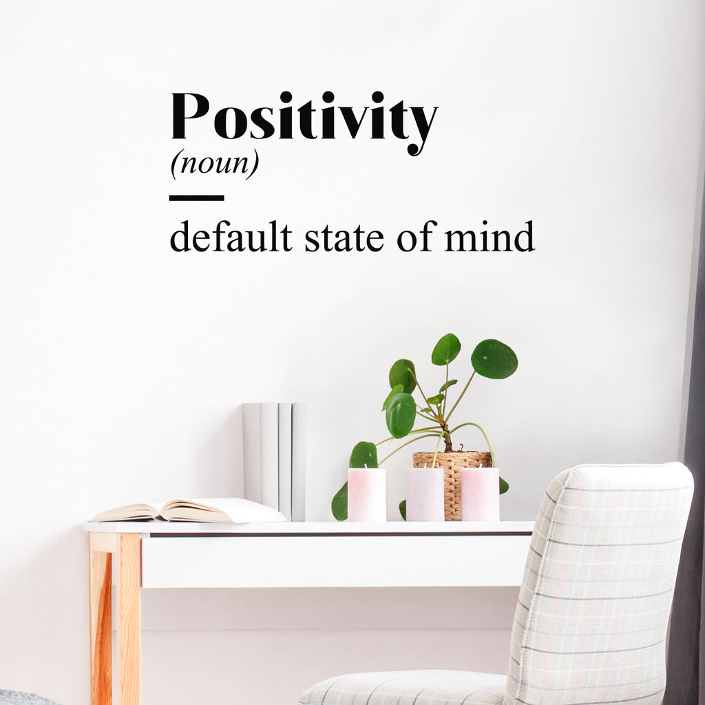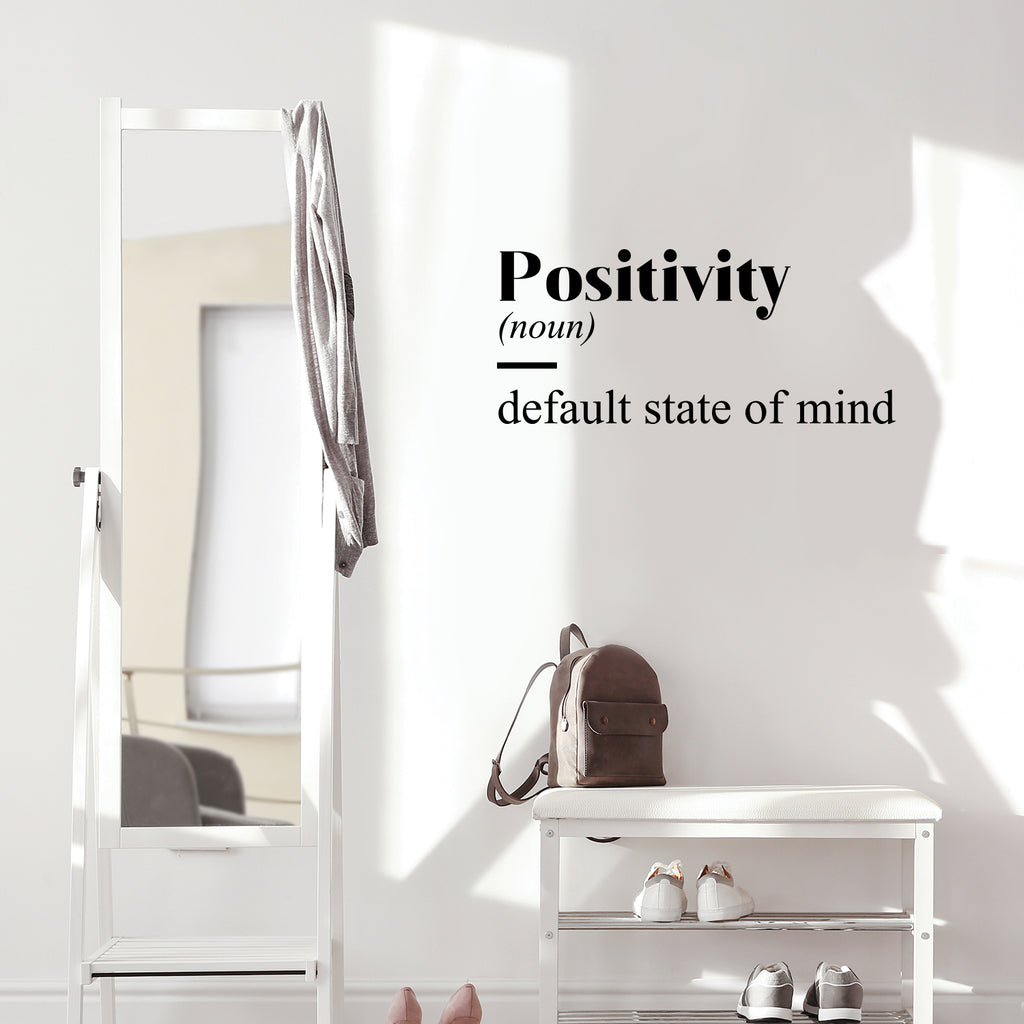 This great decal quote "Positivity: Default State Of Mind"; is the perfect touch for your home. Use it for your kids room; living room or anywhere you want to bring some extra decoration. It's a vinyl sticker that is easy to put on any smooth and dry surface. Our modern designs don't just brighten up the room; but brighten up the day. Using top of the line vinyl across all of our production allows us to be the leaders in quality and design.