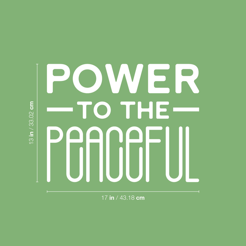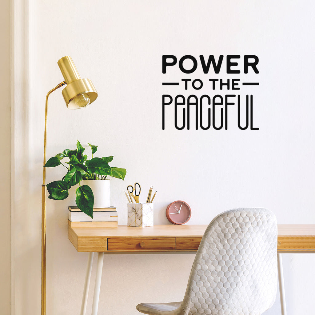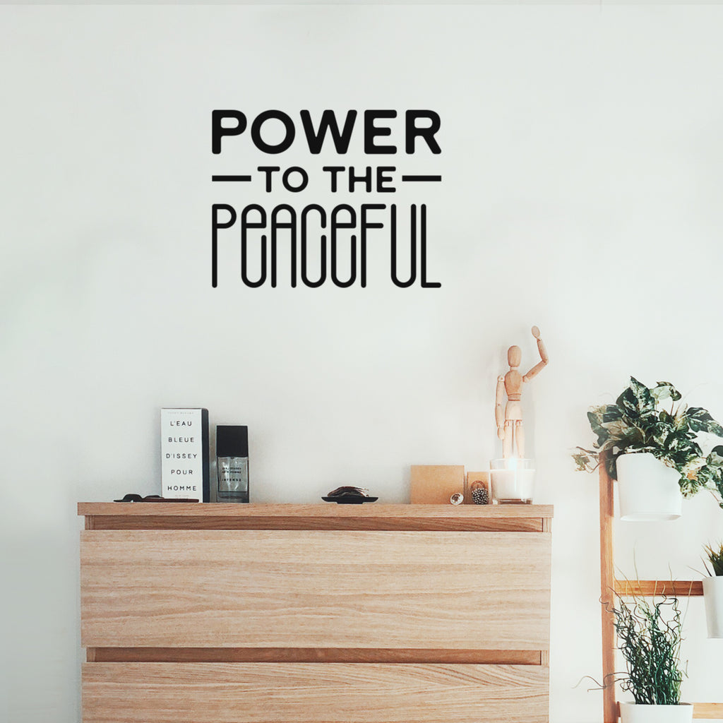 This awesome cute & inspiring decal quote "Power To The Peaceful"; is the perfect touch for your home. Use it for your bedroom; fitness center; office or anywhere you want to bring some extra positive decoration. It's a vinyl sticker that is easy to put on any smooth and dry surface. Our modern designs don't just brighten up the room; but brighten up the day. Using top of the line vinyl across all of our production allows us to be the leaders in quality and design.