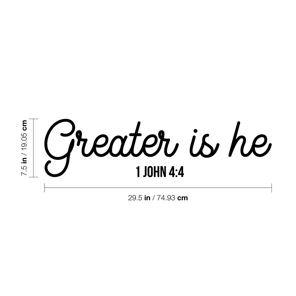 This great decal quote "Greater Is He 1 John 4:4"; is the perfect touch for your home. Use it for your kids room; living room or anywhere you want to bring some extra decoration. It's a vinyl sticker that is easy to put on any smooth and dry surface. Our modern designs don't just brighten up the room; but brighten up the day. Using top of the line vinyl across all of our production allows us to be the leaders in quality and design.