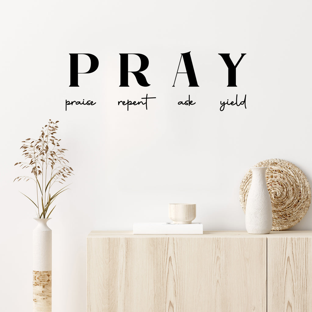 This awesome spiritual & inspiring decal quote "PRAY"; is the perfect touch for your home. Use it for your bedroom; closet; living room or anywhere you want to bring some extra cute decoration. It's a vinyl sticker that is easy to put on any smooth and dry surface. Our modern designs don't just brighten up the room; but brighten up the day. Using top of the line vinyl across all of our production allows us to be the leaders in quality and design.