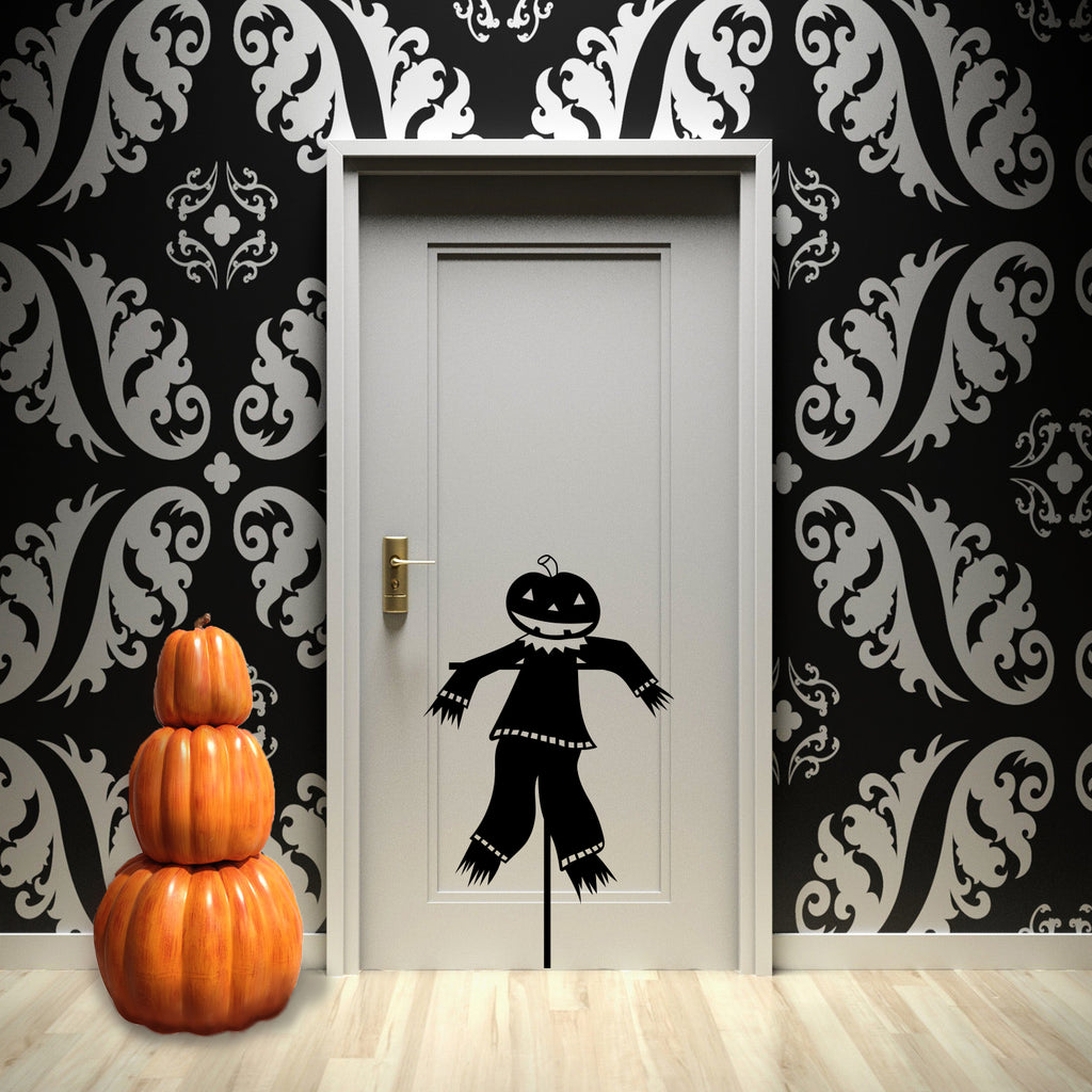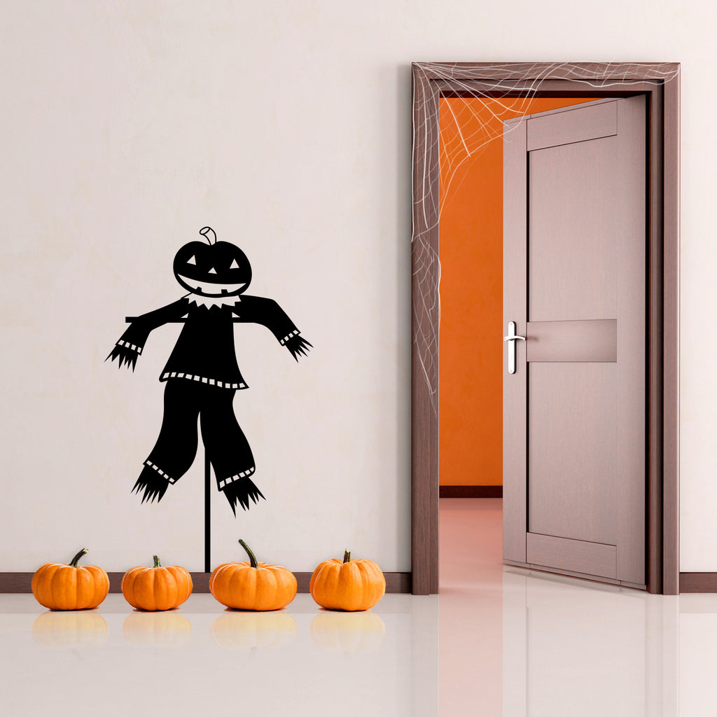 This Halloween inspired Pumpkin Head Scarecrow wall art decal is the perfect touch for both indoor and outdoor decoration. It's a vinyl sticker that is easy to put on almost any smooth surface and really brings a room together adding the perfect touch of decoration. This vinyl decal is perfect for Halloween season in the October month. Our modern decals don't just brighten up the room; but brighten up the day. Using top of the line vinyl across all of our production allows us to be the leaders in quality and design.