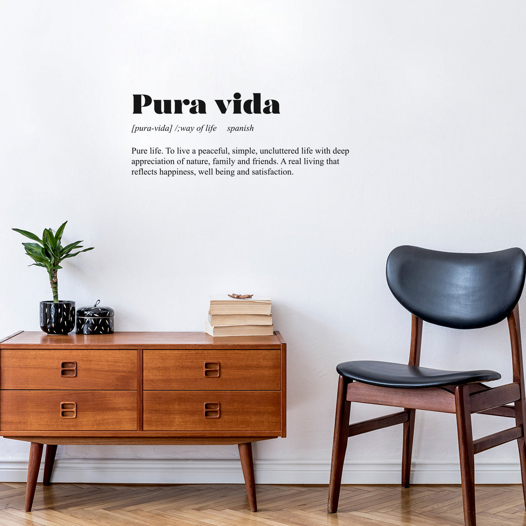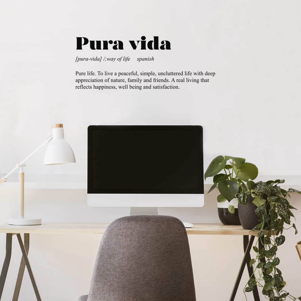This awesome cute & positive vibes decal quote "Pura Vida. Pure Life. To life a peaceful; simple; uncluttered life with deep appreciation of nature; family and friends"; is the perfect touch for your home or office. Use it for your business; coffee shop; bathroom or anywhere you want to bring some extra positive decoration. It's a vinyl sticker that is easy to put on any smooth and dry surface. Our modern designs don't just brighten up the room; but brighten up the day. Using top of the line vinyl across all of our production allows us to be the leaders in quality and design.