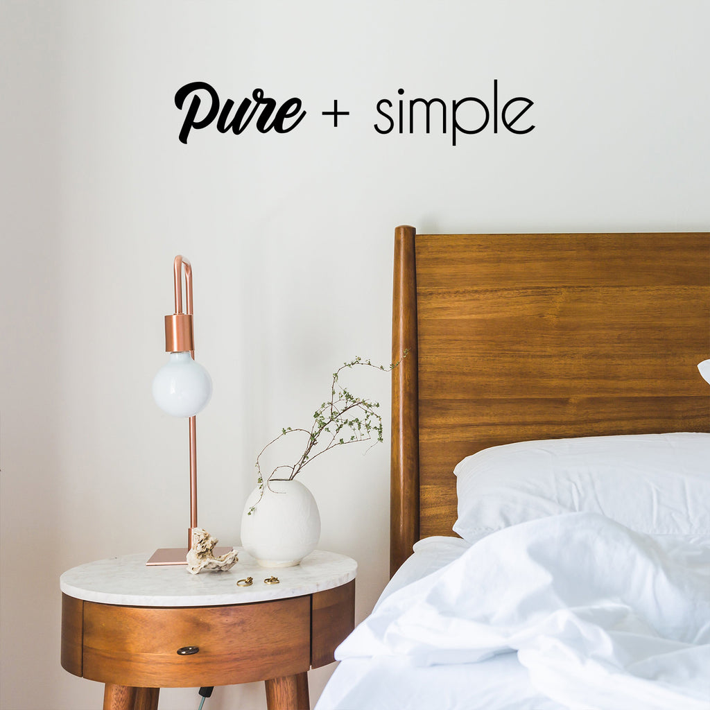 This awesome cute decal quote "Pure + Simple"; is the perfect touch for your home. Use it for your living room; playroom; kids room or anywhere you want to bring some extra cute decoration. It's a vinyl sticker that is easy to put on any smooth and dry surface. Our modern designs don't just brighten up the room; but brighten up the day. Using top of the line vinyl across all of our production allows us to be the leaders in quality and design.