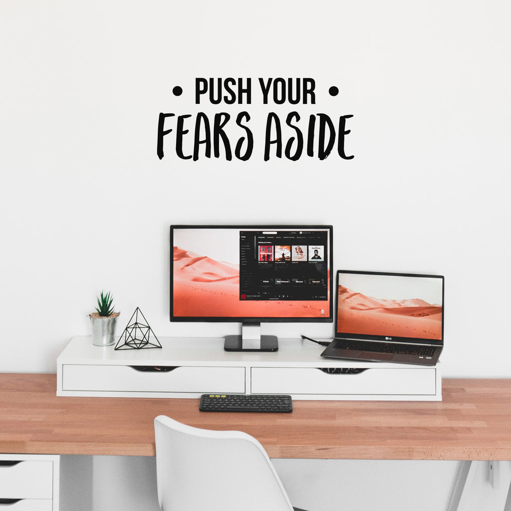 This awesome motivational decal quote "Push Your Fears Aside"; is the perfect touch for your home or work. Use it for your dorm room; living room or anywhere you want to bring some extra girly decoration. It's a vinyl sticker that is easy to put on any smooth and dry surface. Our modern designs don't just brighten up the room; but brighten up the day. Using top of the line vinyl across all of our production allows us to be the leaders in quality and design.