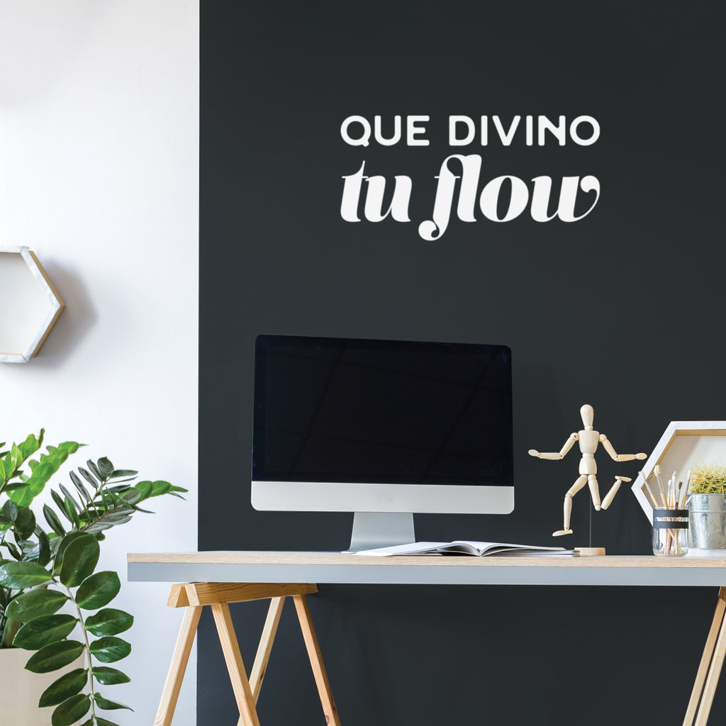 This awesome motivational decal quote "Que Divino Tu Flow"; is the perfect touch for your home or office. Use it for your living room; coffee shop; bedroom or anywhere you want to bring some extra positive decoration. It's a vinyl sticker that is easy to put on any smooth and dry surface. Our modern designs don't just brighten up the room; but brighten up the day. Using top of the line vinyl across all of our production allows us to be the leaders in quality and design.