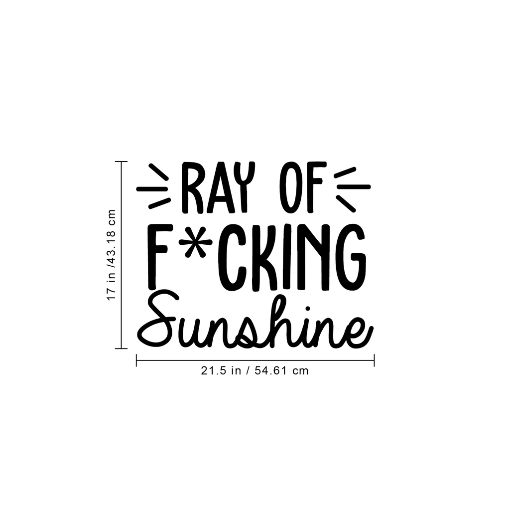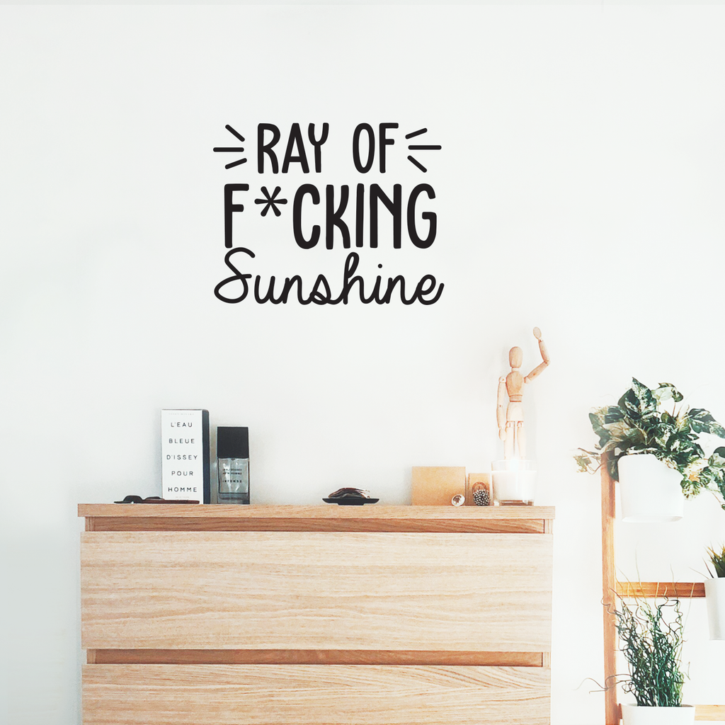This awesome funny & sarcastic decal quote "Ray Of Fcking Sunshine"; is the perfect touch for your home or office. Use it for your closet; bedroom; living room or anywhere you want to bring some extra positive decoration. It's a vinyl sticker that is easy to put on any smooth and dry surface. Our modern designs don't just brighten up the room; but brighten up the day. Using top of the line vinyl across all of our production allows us to be the leaders in quality and design.