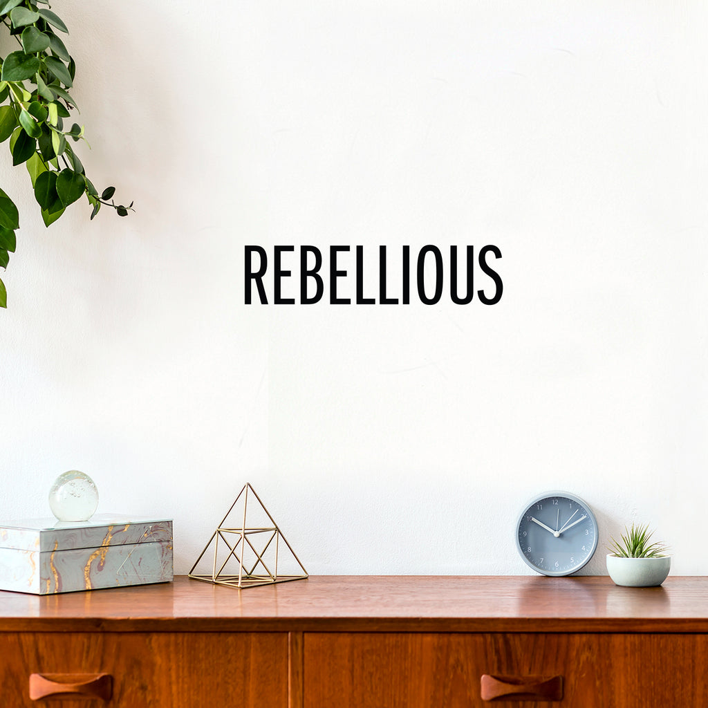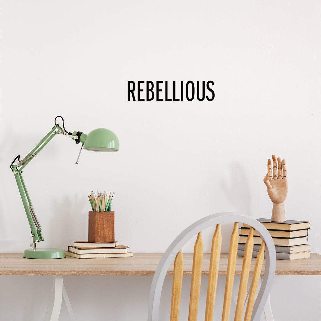 This awesome positive decal quote "Rebellious"; is the perfect touch for your school or office. Use it for your make up mirror; bathroom; business or anywhere you want to bring some extra positive decoration. It's a vinyl sticker that is easy to put on any smooth and dry surface. Our modern designs don't just brighten up the room; but brighten up the day. Using top of the line vinyl across all of our production allows us to be the leaders in quality and design.