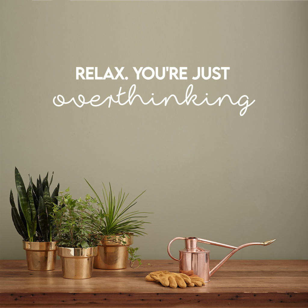 This cute & inspirational decal quote "Relax You're Just Overthinking"; is the perfect touch for your home or office. Use it for your make up mirror; bathroom; business or anywhere you want to bring some extra positive decoration. It's a vinyl sticker that is easy to put on any smooth and dry surface. Our modern designs don't just brighten up the room; but brighten up the day. Using top of the line vinyl across all of our production allows us to be the leaders in quality and design.