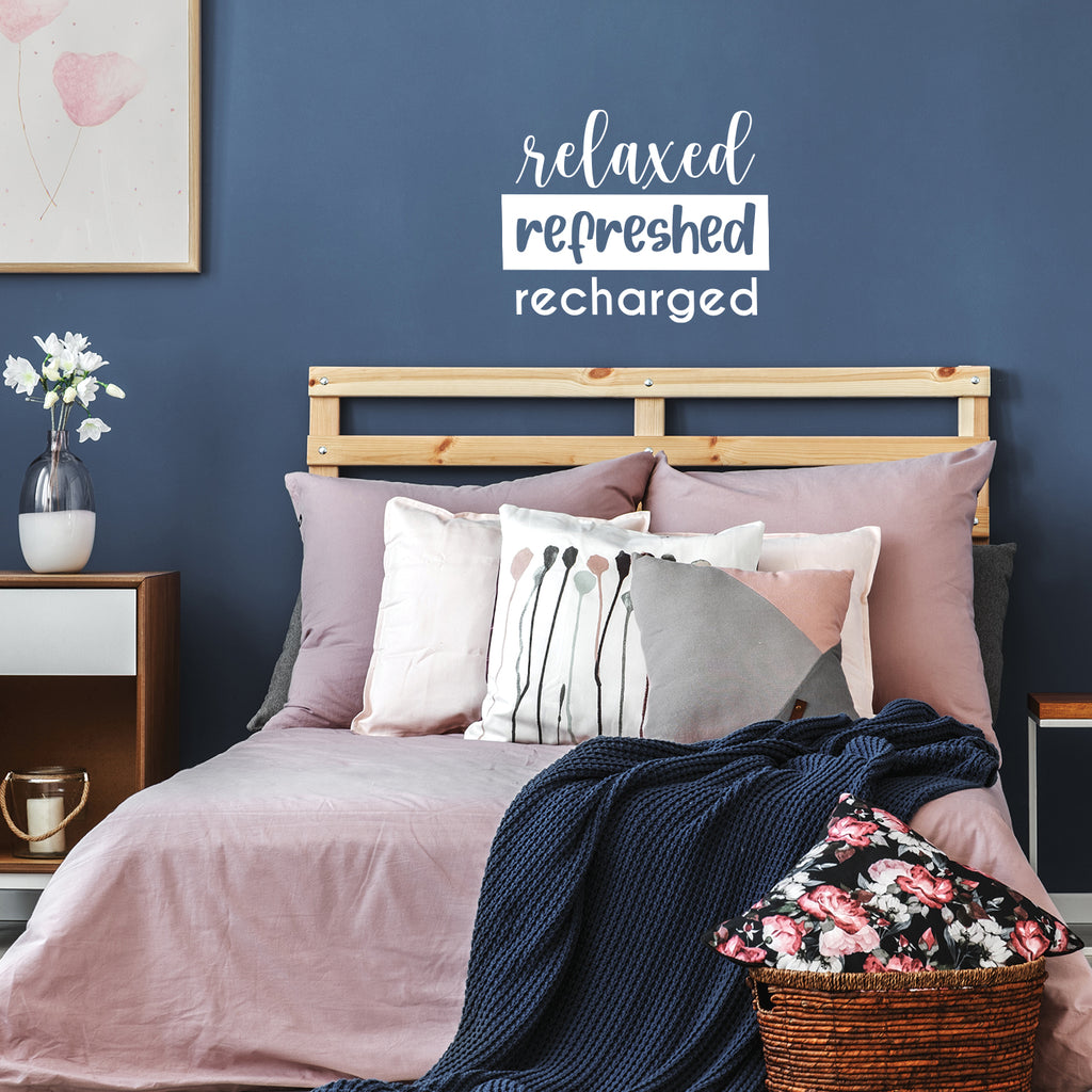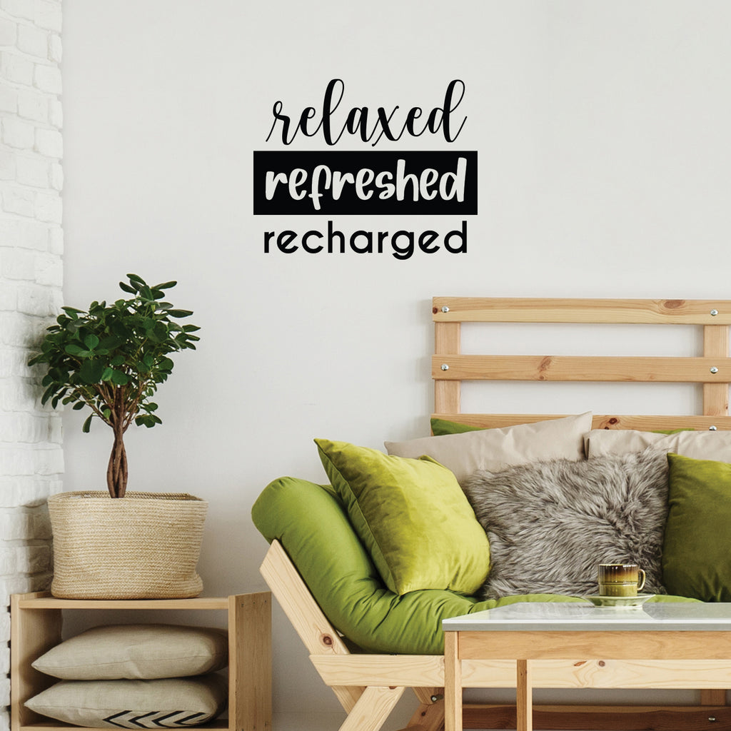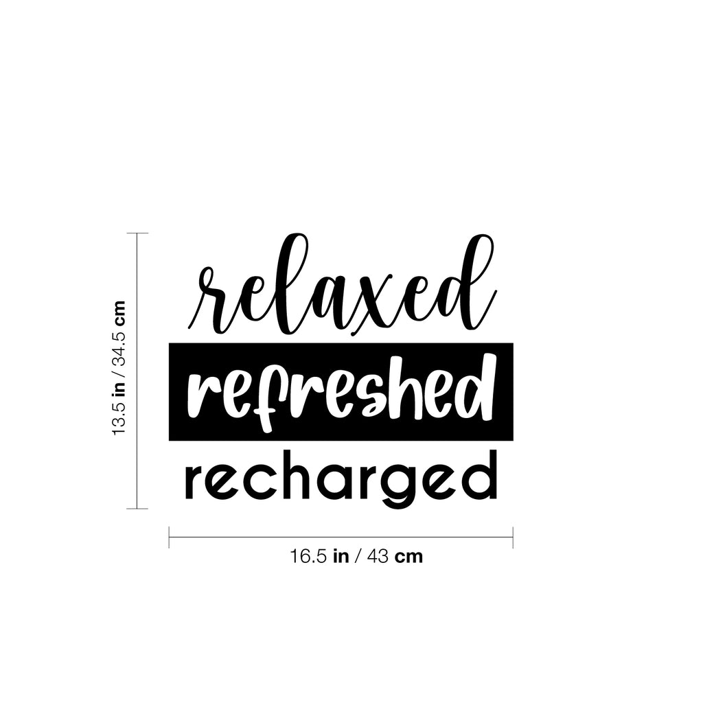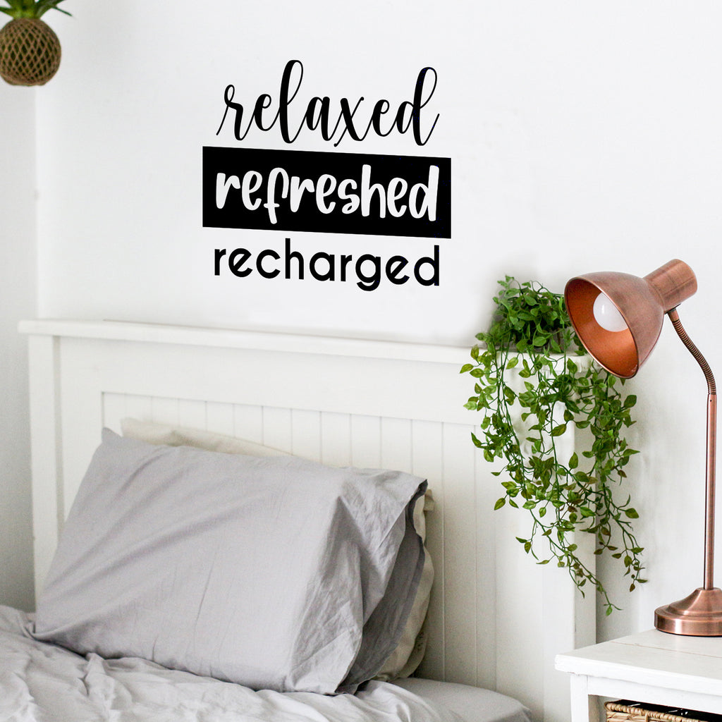 This chic & inspirational decal quote "Relaxed Refreshed Recharged"; is the perfect touch for your school or office. Use it for your make up mirror; bathroom; business or anywhere you want to bring some extra positive decoration. It's a vinyl sticker that is easy to put on any smooth and dry surface. Our modern designs don't just brighten up the room; but brighten up the day. Using top of the line vinyl across all of our production allows us to be the leaders in quality and design.