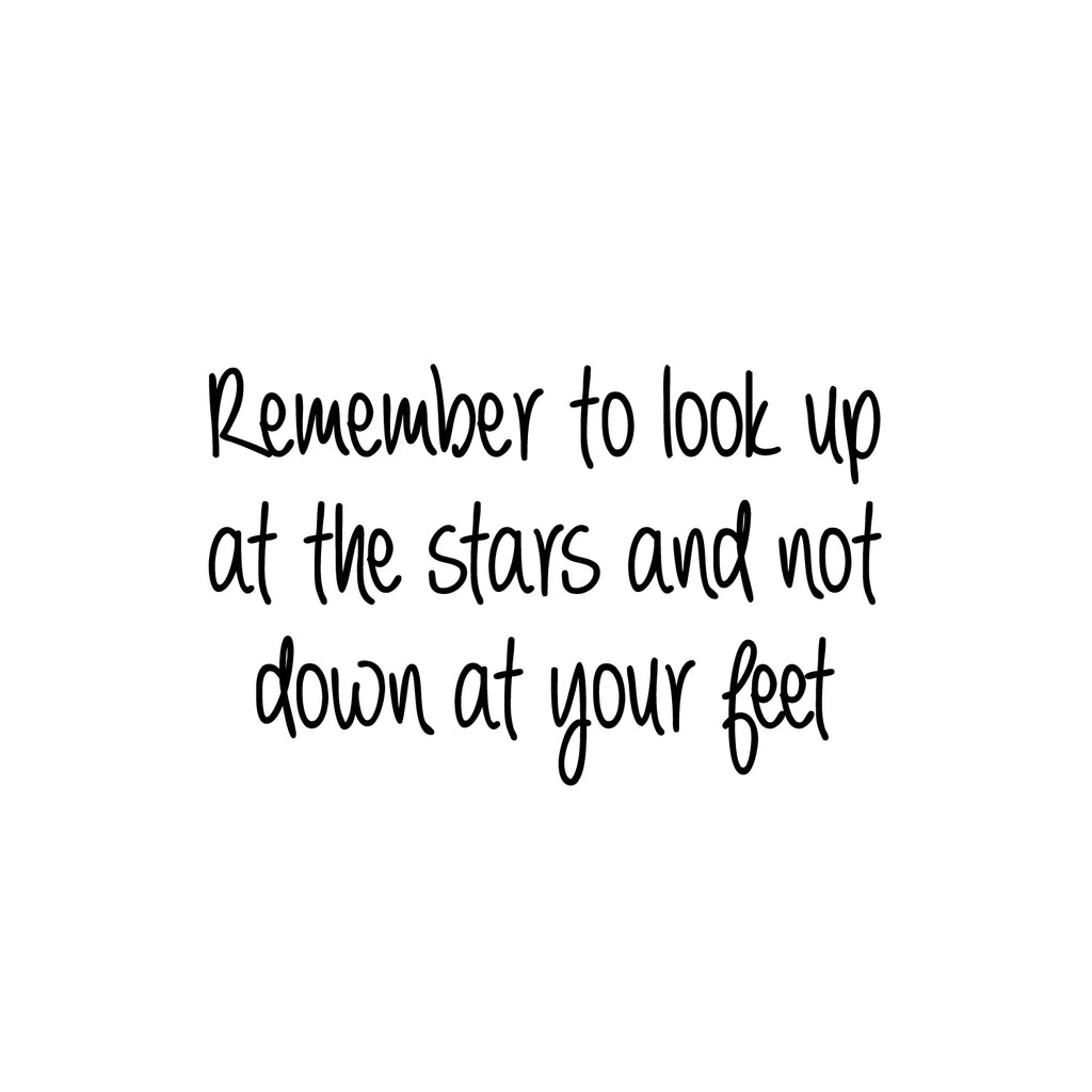 This awesome inspirational decal quote "Remember To Look Up"; is the perfect touch for your home or office. Use it for your bedroom; closet; living room or anywhere you want to bring some extra positive decoration. It's a vinyl sticker that is easy to put on any smooth and dry surface. Our modern designs don't just brighten up the room; but brighten up the day. Using top of the line vinyl across all of our production allows us to be the leaders in quality and design.