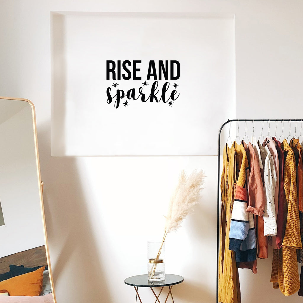 This awesome cute decal quote "Rise And Sparkle"; is the perfect touch for your home or work. Use it for your bedroom; closet; living room or anywhere you want to bring some extra positive decoration. It's a vinyl sticker that is easy to put on any smooth and dry surface. Our modern designs don't just brighten up the room; but brighten up the day. Using top of the line vinyl across all of our production allows us to be the leaders in quality and design.